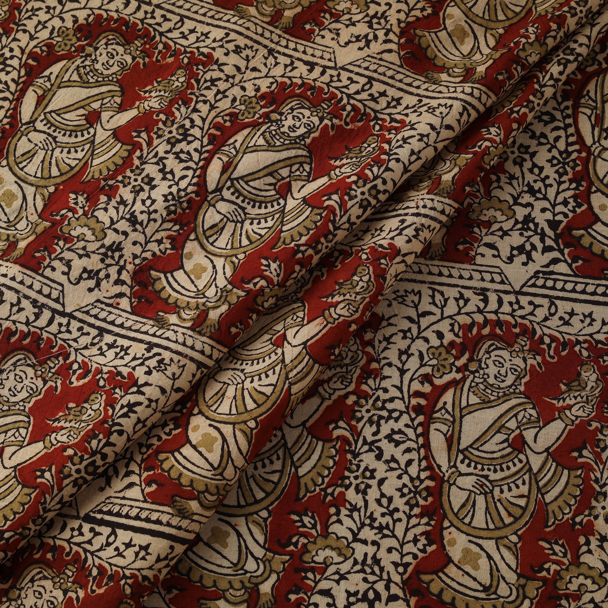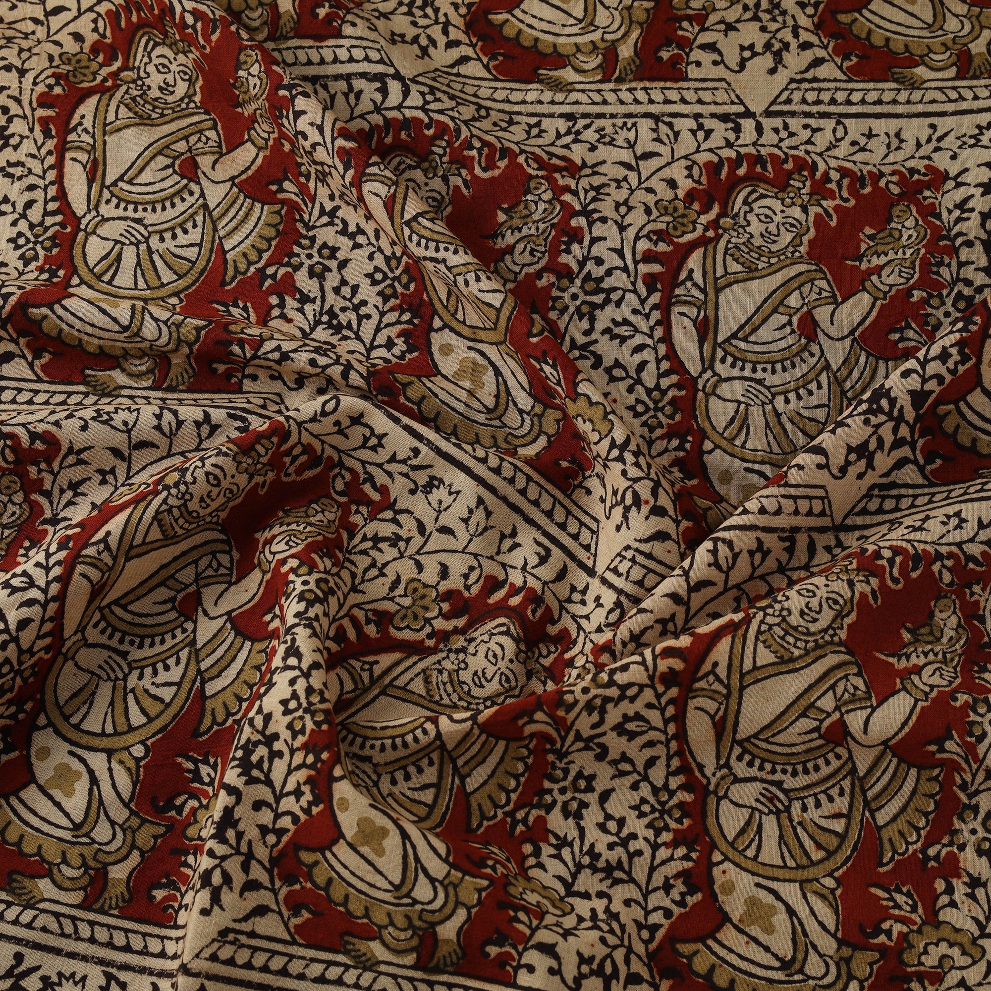 • Natural Dyed Hand Block Print Cotton Pedana Kalamkari Fabric 57