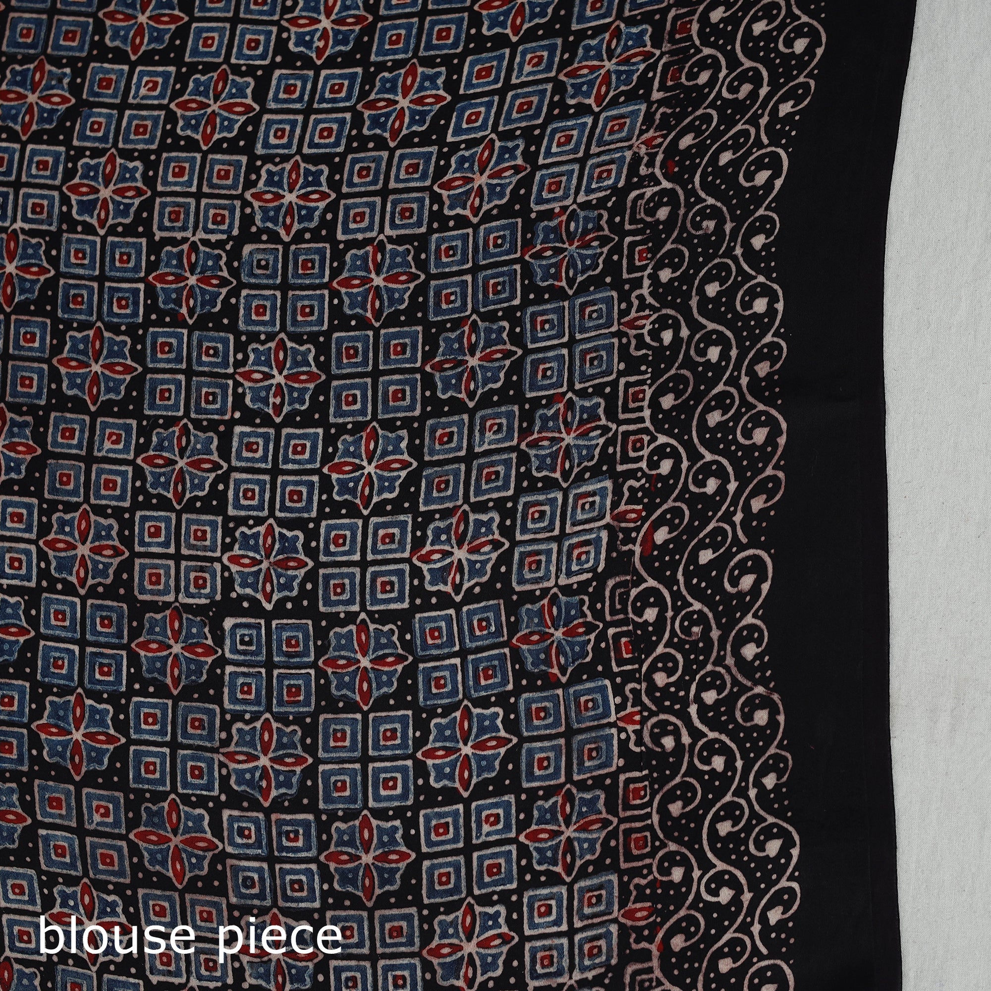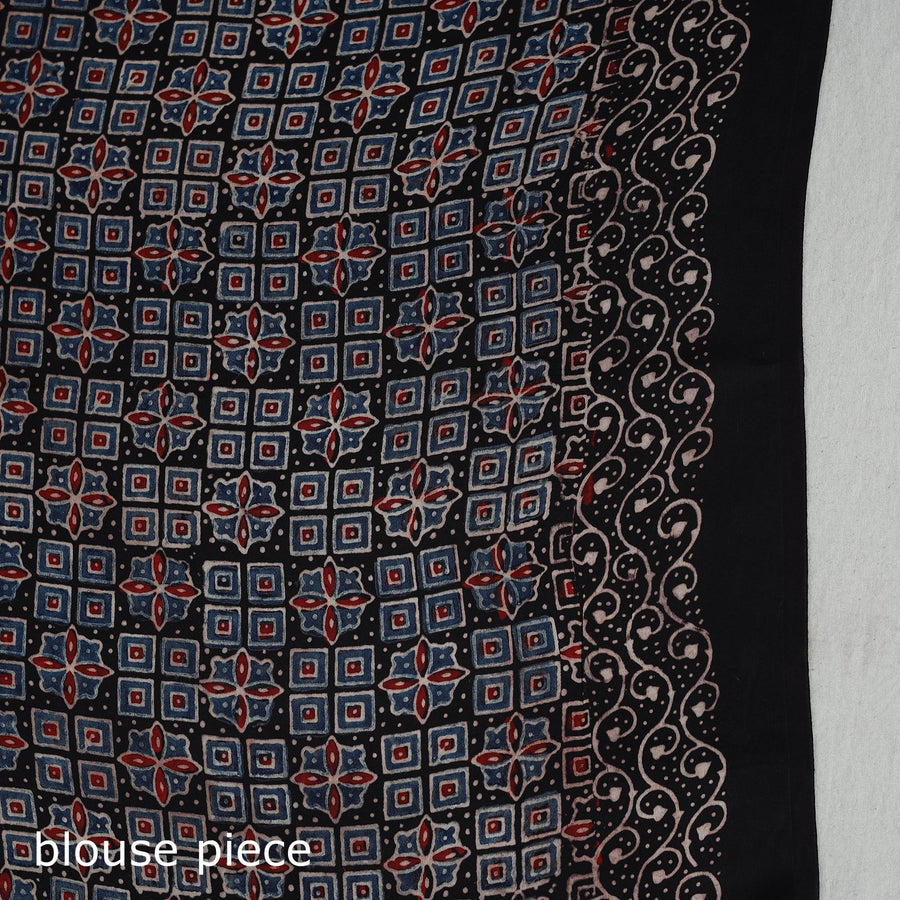 This black natural dyed hand block print dola silk ajrakh saree with a zari border showcases the timeless craftsmanship of the Kutch artisans. Made with natural dyes using a 4,500-year-old resist-dyeing technique, each saree tells a story of heritage and skill. The Ajrakh process is intricate, involving multiple stages of printing and dyeing to create its iconic geometric motifs. Perfect for special occasions, this saree offers elegance with sustainability. Celebrate culture and artistry with every drape.
