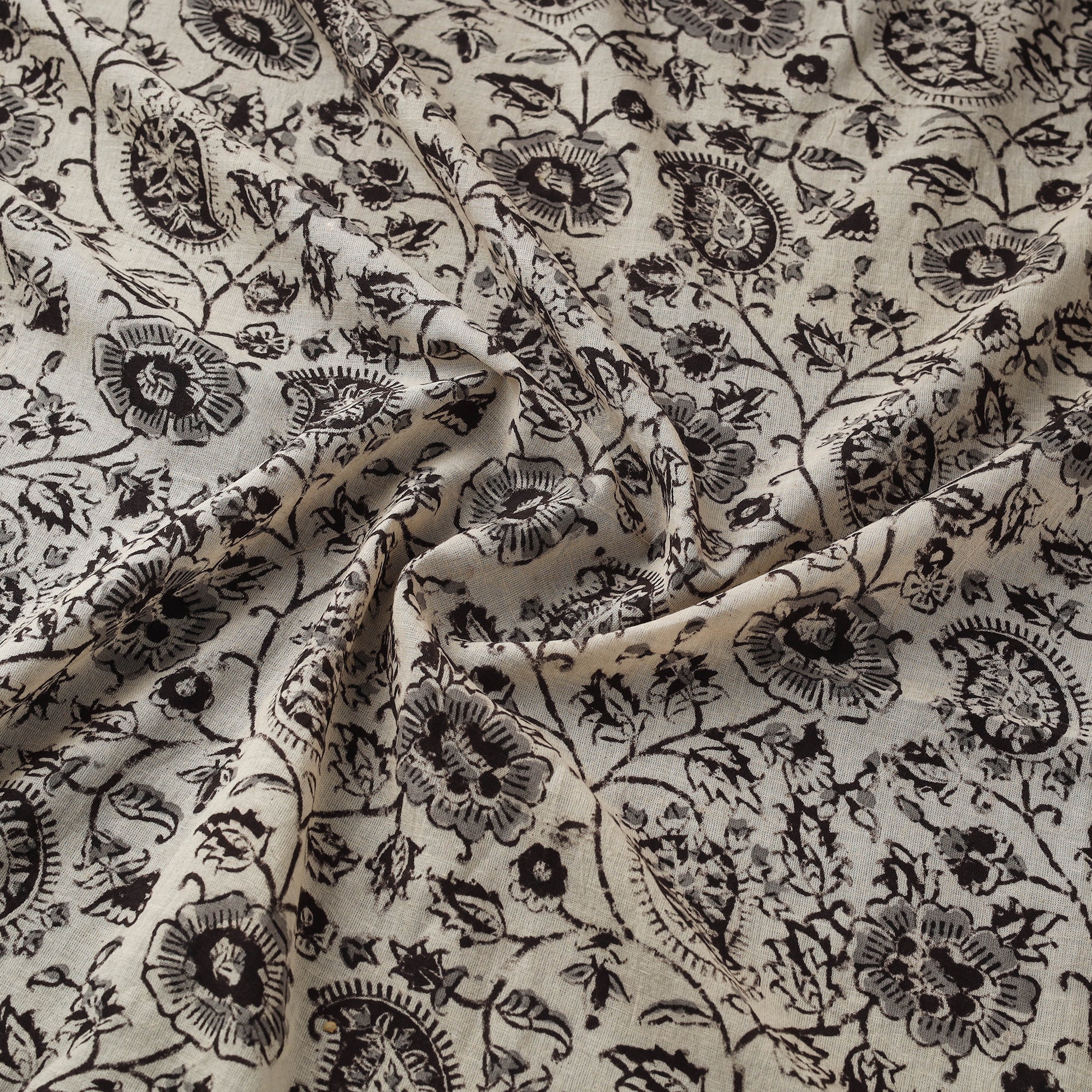 Kalamkari hand block printed pure mul cotton fabric is crafted using one of the oldest and most intricate printing techniques in India, dating back over 3,000 years. Skilled artisans use hand-carved wooden blocks dipped in natural dyes to create detailed Kalamkari motifs inspired by mythology, nature, and traditional patterns. Made in Pedana, Andhra Pradesh, this fabric reflects generations of practiced skill and cultural legacy. It is ideal for stitching garments, dupattas, or adding distinctive accents to home decor.