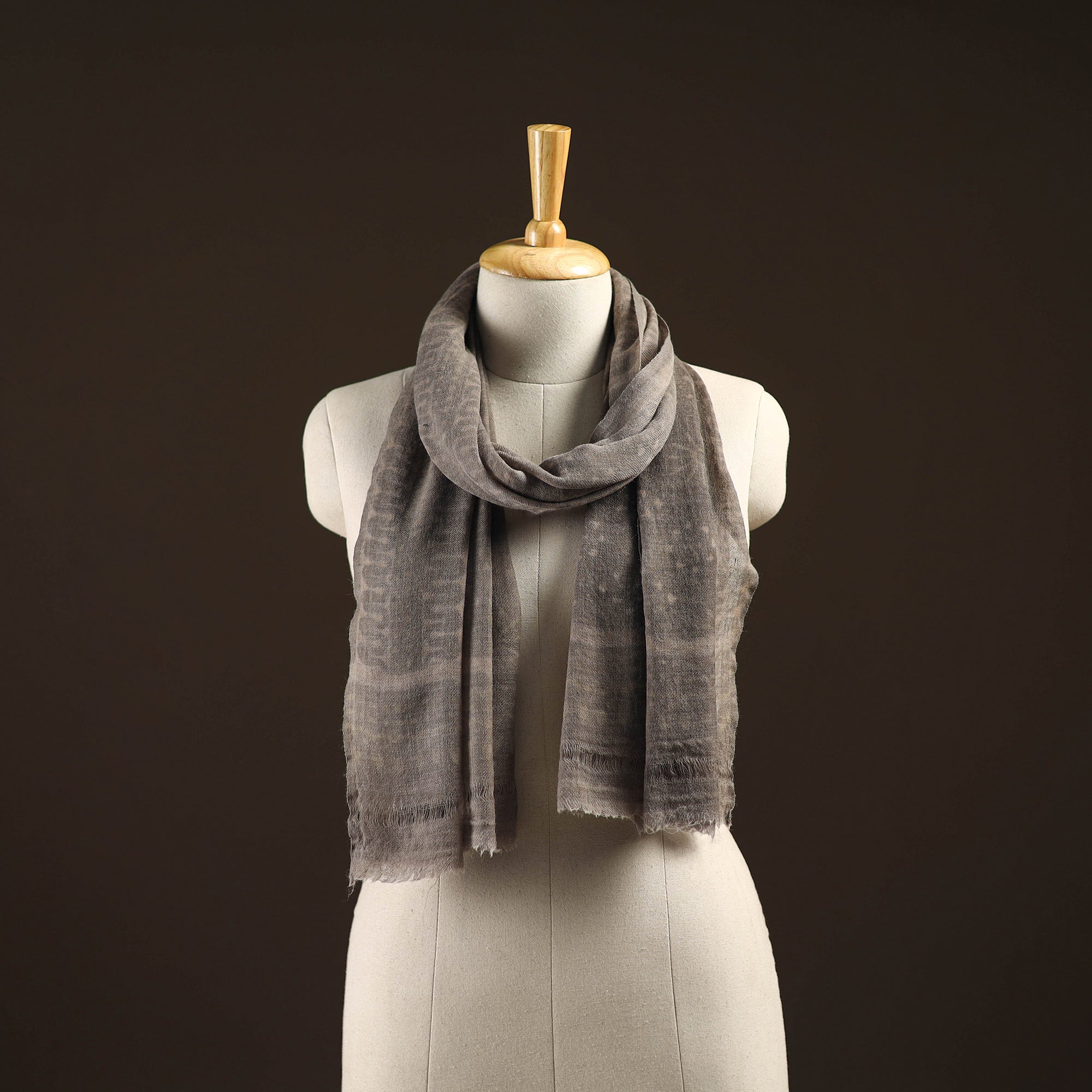 Brown - Natural Dyed Hand Block Printed Pure Wool Akola Stole 07