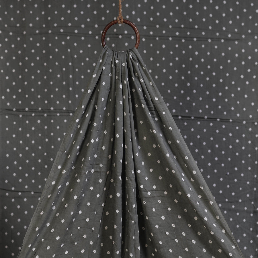 Embrace the charm of Kutch with this stunning grey bandhani mul cotton fabric. Carefully hand-tied and natural dyed using age-old bandhej techniques, each piece features intricate patterns that reflect a rich cultural legacy. Soft, breathable, and versatile, it’s perfect for creating modern outfits with a traditional touch.