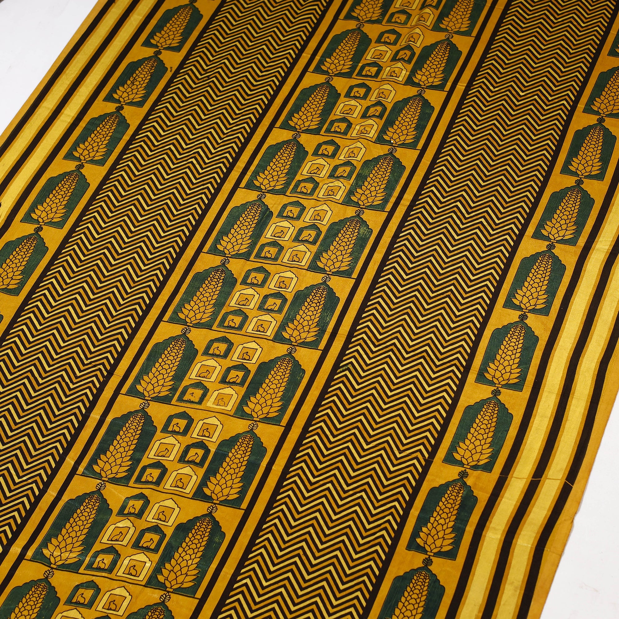 This yellow mashru silk ajrakh fabric, hand block printed with natural dyes by skilled artisans of Kutch, blends the richness of silk with the comfort of cotton. Its soft sheen and intricate patterns make it ideal for garments, sarees, and traditional wear. Also perfect for accessories and home decor like cushions and drapes, this fabric brings a timeless touch of elegance and heritage to every creation.