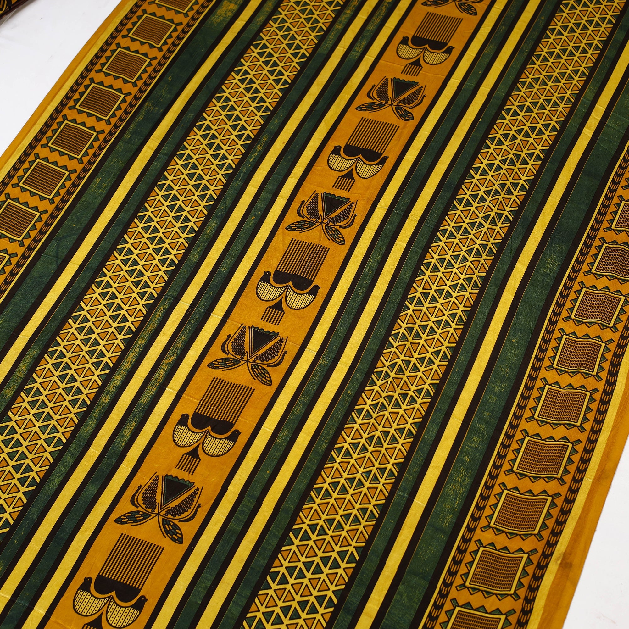 This green mashru silk ajrakh fabric, hand block printed with natural dyes by skilled artisans of Kutch, blends the richness of silk with the comfort of cotton. Its soft sheen and intricate patterns make it ideal for garments, sarees, and traditional wear. Also perfect for accessories and home decor like cushions and drapes, this fabric brings a timeless touch of elegance and heritage to every creation.