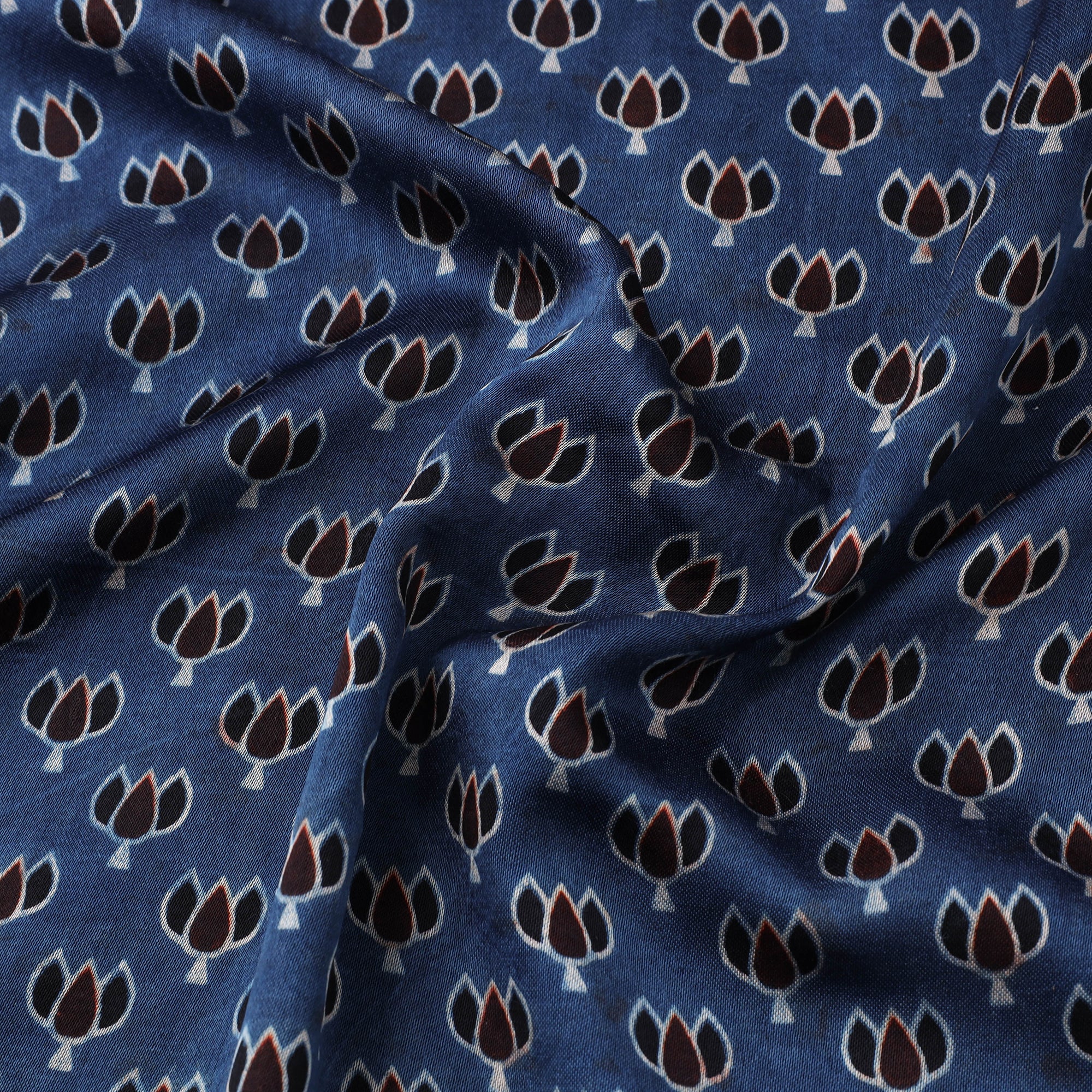 • Blue Natural Dyed Mashru Silk Ajrakh Print Fabric