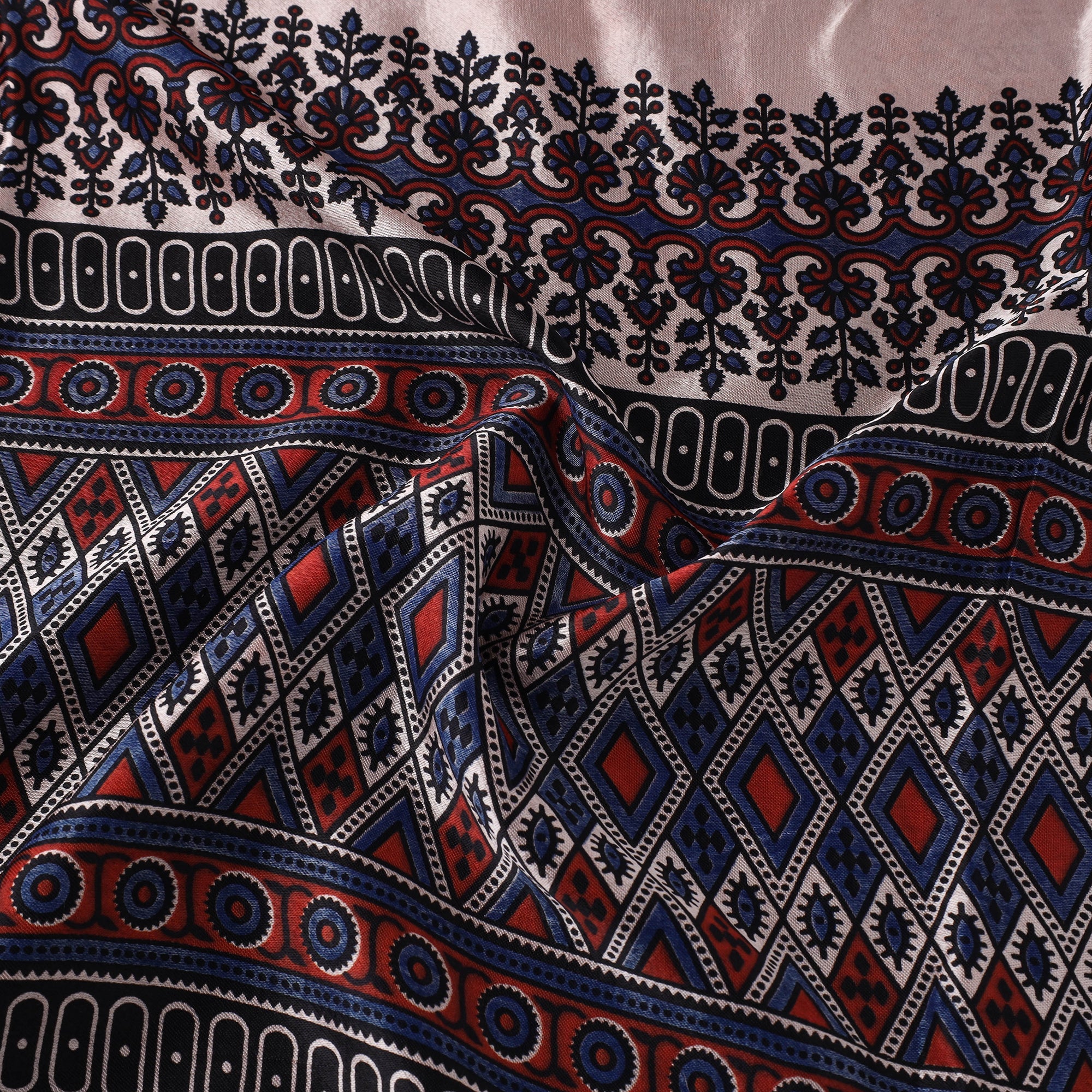 Beige - Natural Dyed Mashru Silk Ajrakh Print Fabric 26