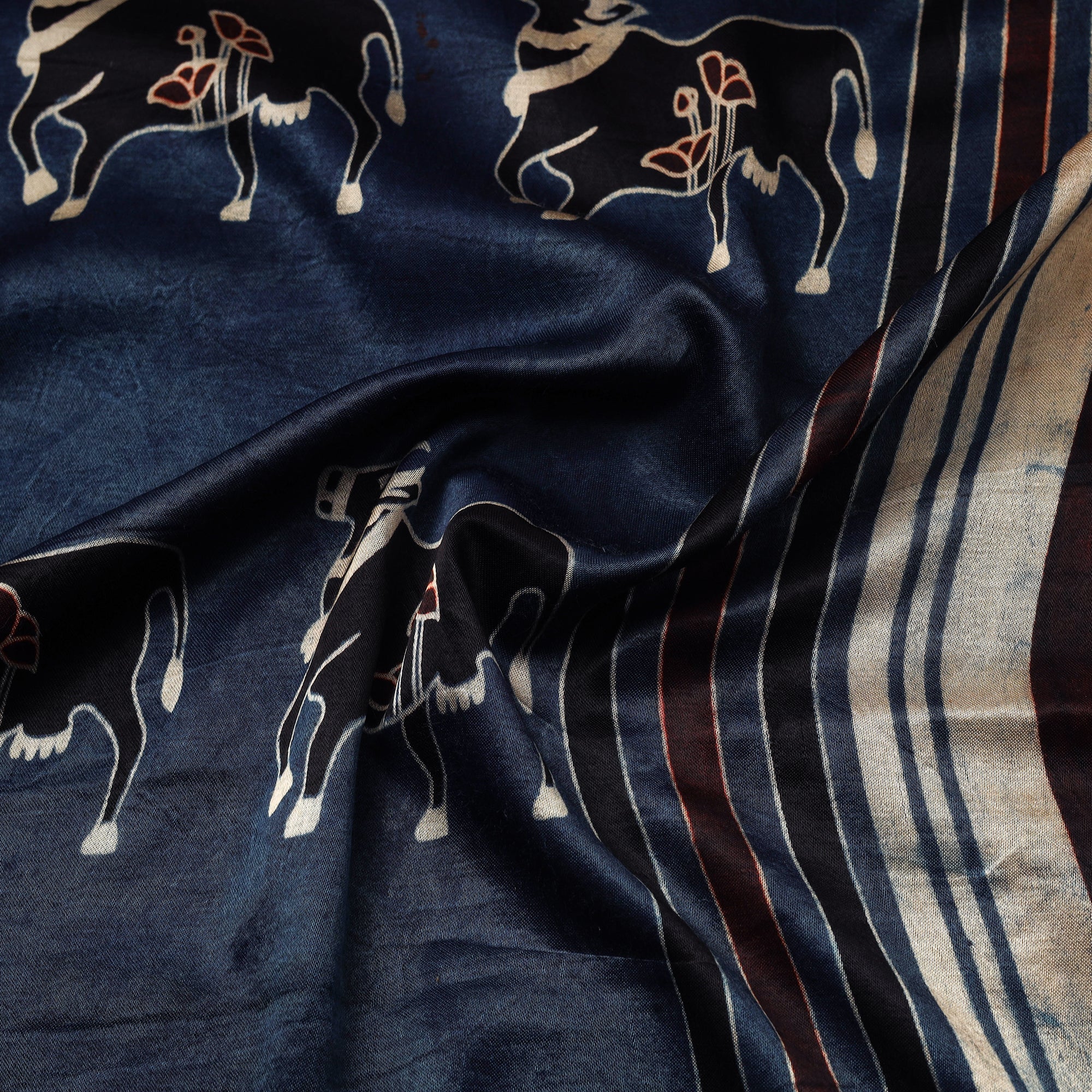 Blue - Natural Dyed Mashru Silk Ajrakh Print Fabric 31