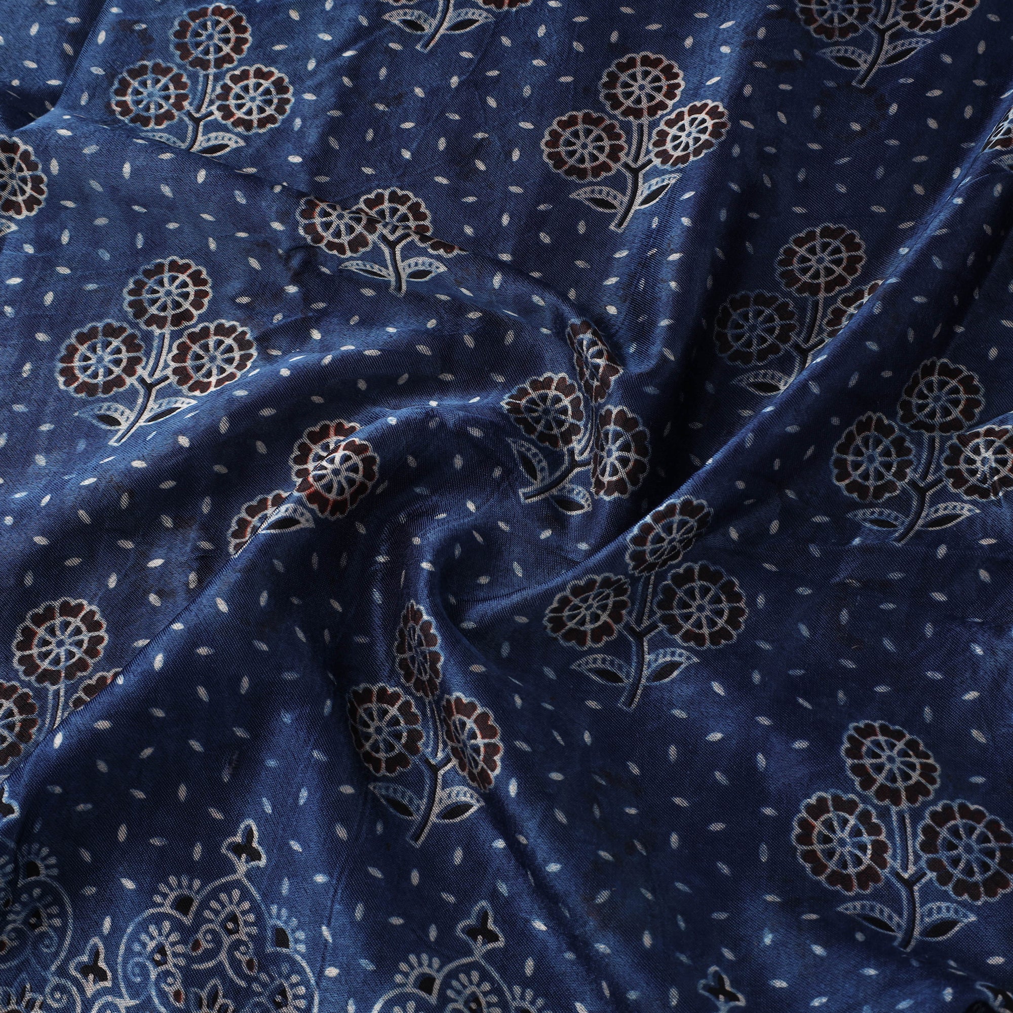 Blue - Natural Dyed Mashru Silk Ajrakh Print Fabric 32