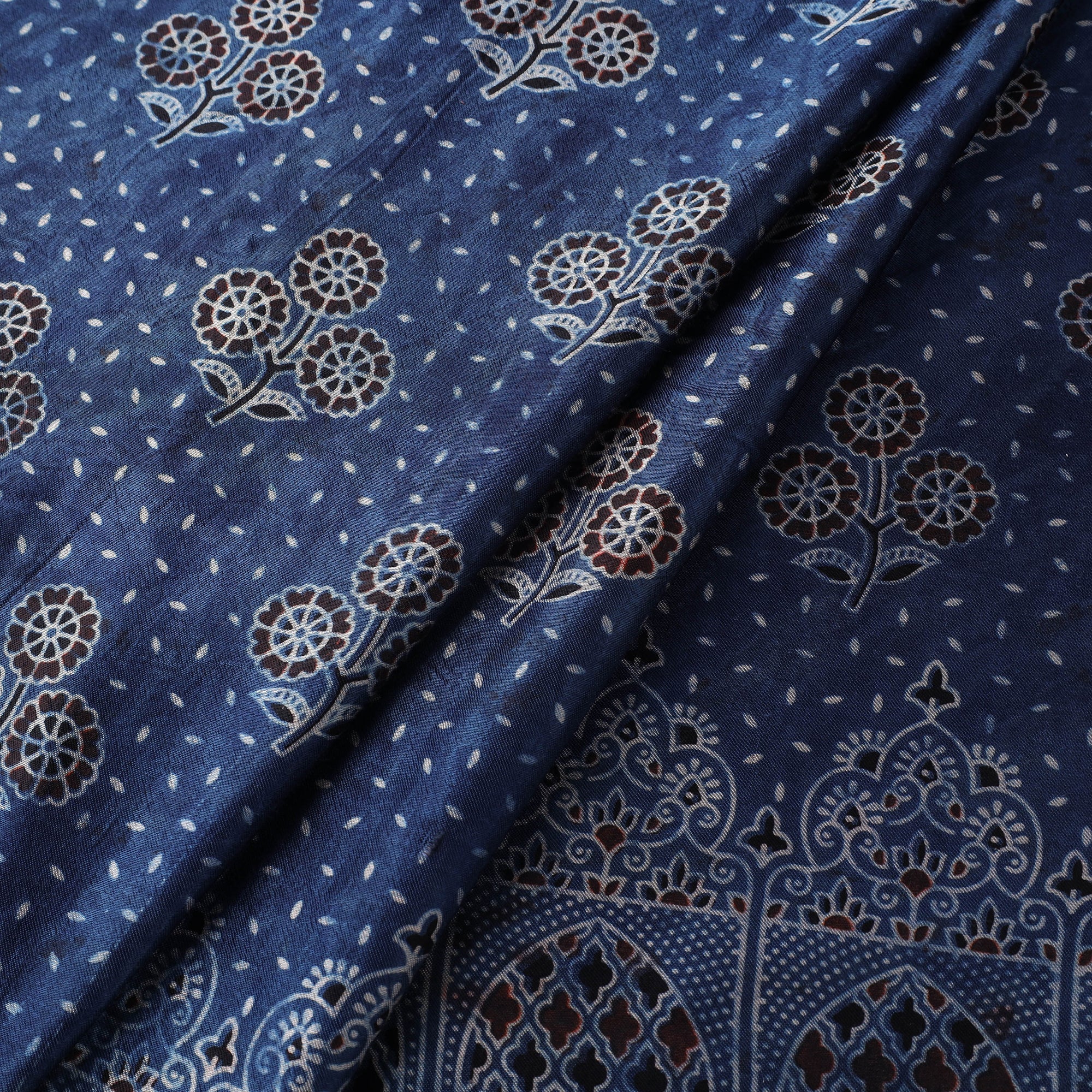 • Blue Natural Dyed Mashru Silk Ajrakh Print Fabric