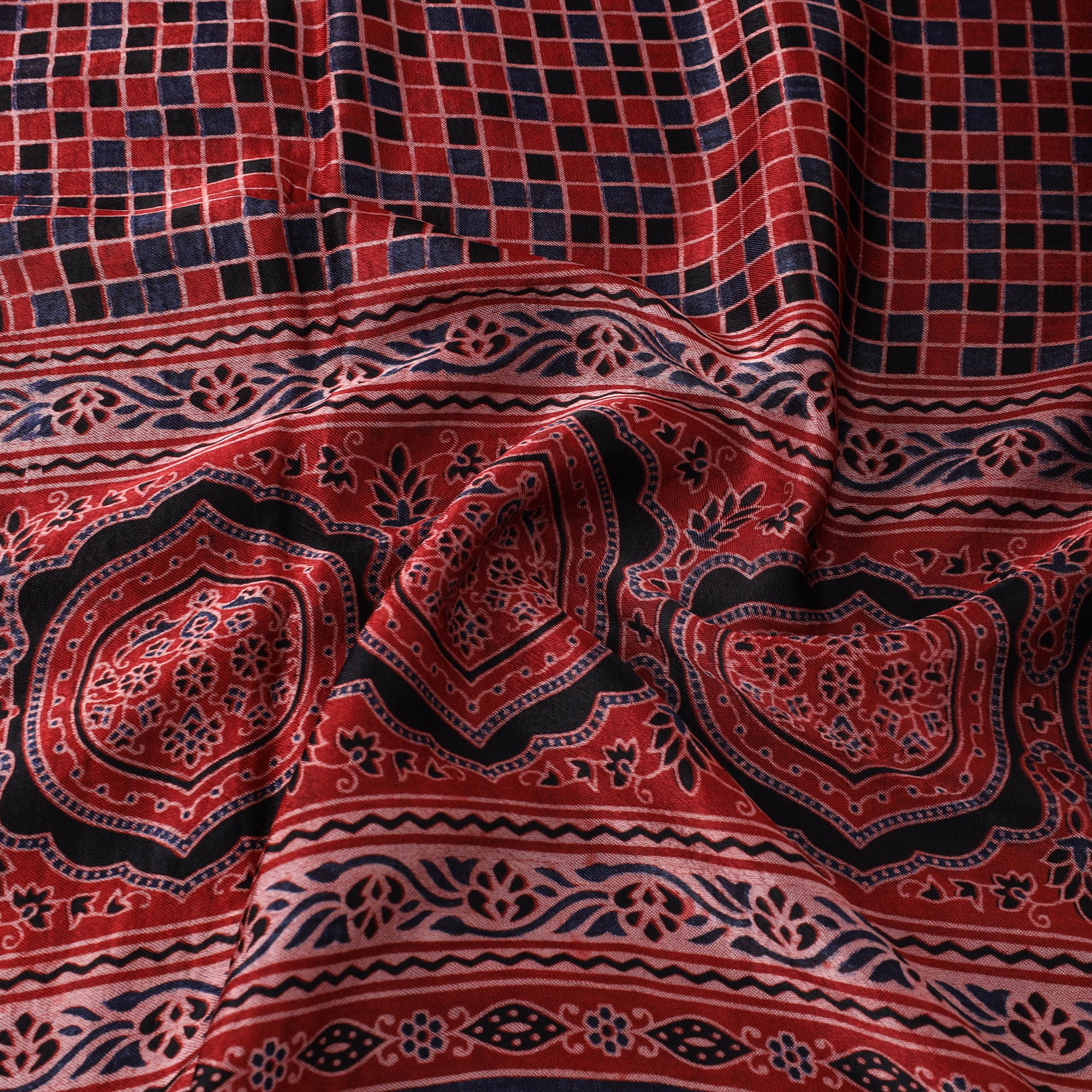Red - Natural Dyed Mashru Silk Ajrakh Print Fabric 35
