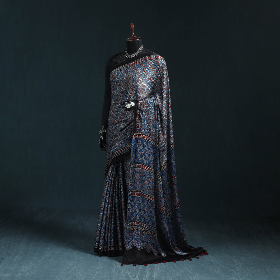 Natural Dyed Modal Silk Kutch Hand Block Print Ajrakh Saree 30