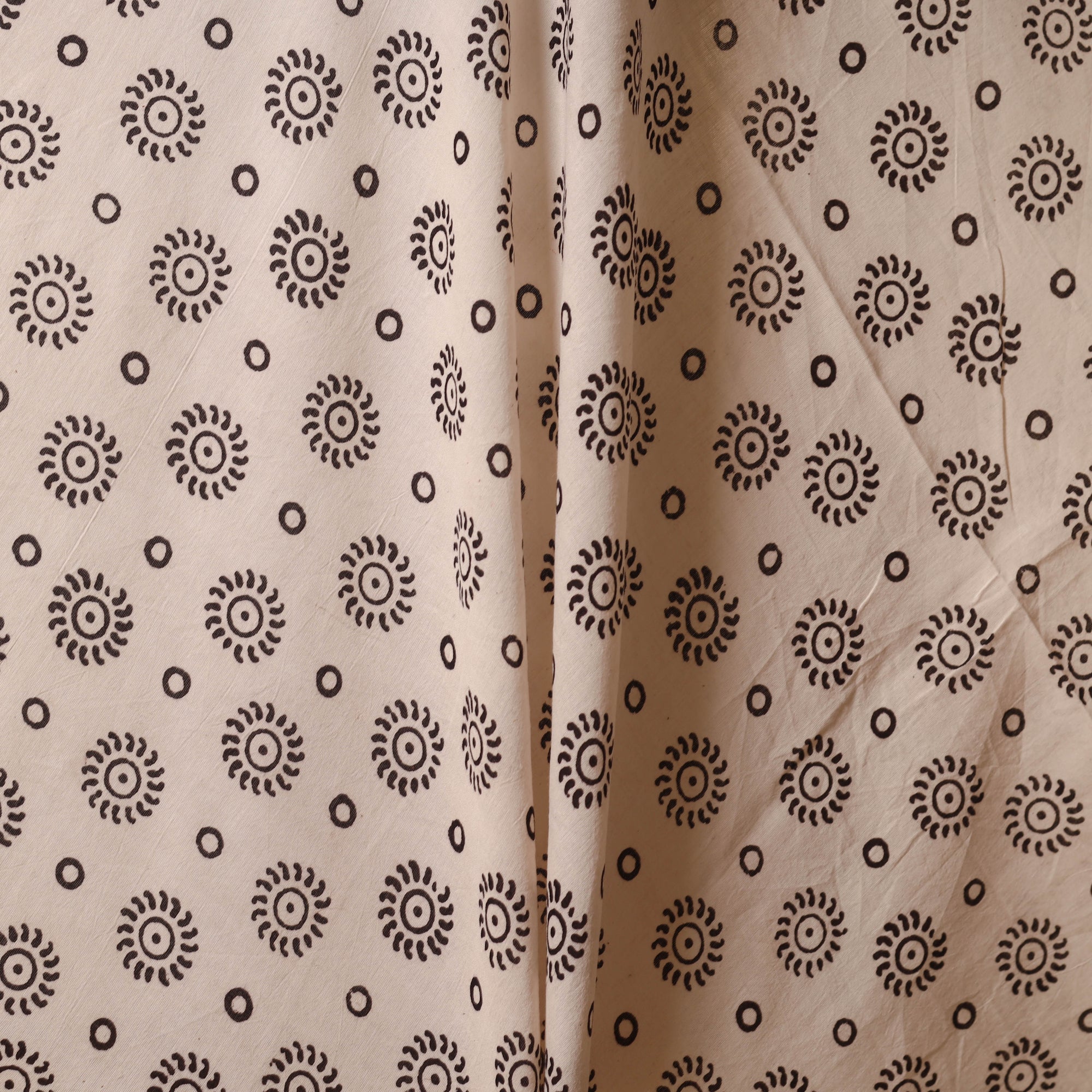 Beige - Natural Dyed Mul Cotton Bagh Print Fabric 09