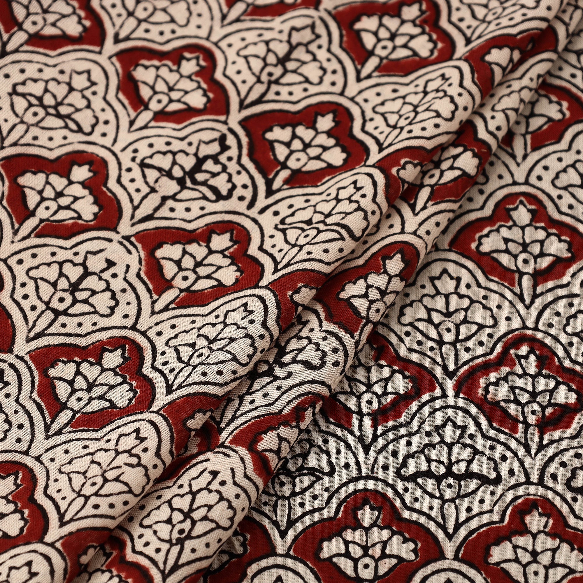 Red - Natural Dyed Cotton Hand Block Bagh Print Fabric 14