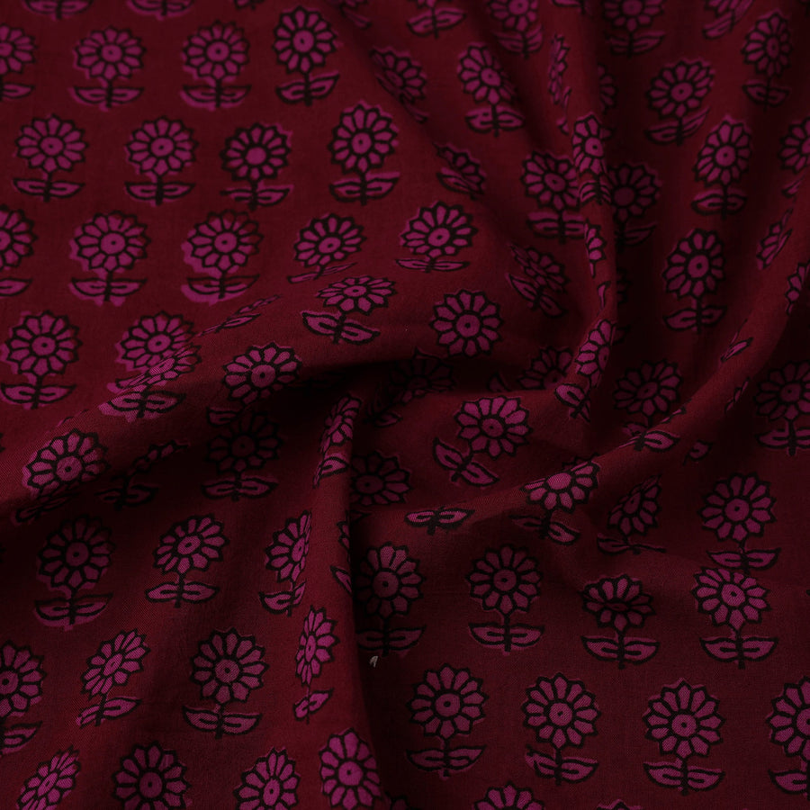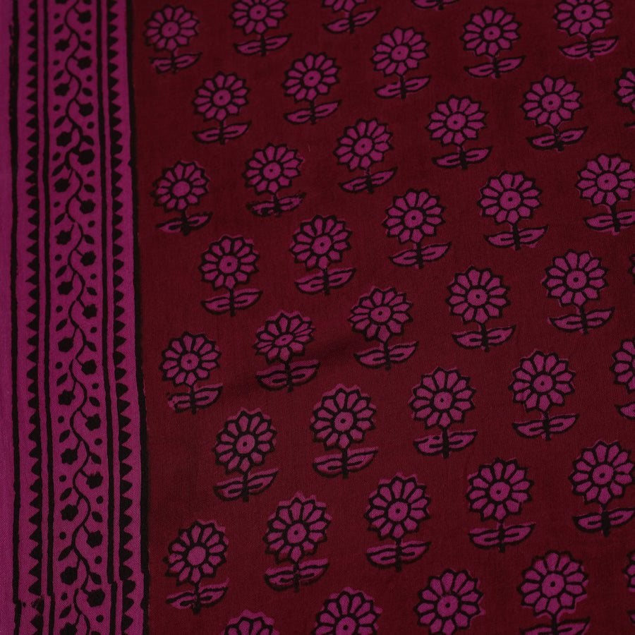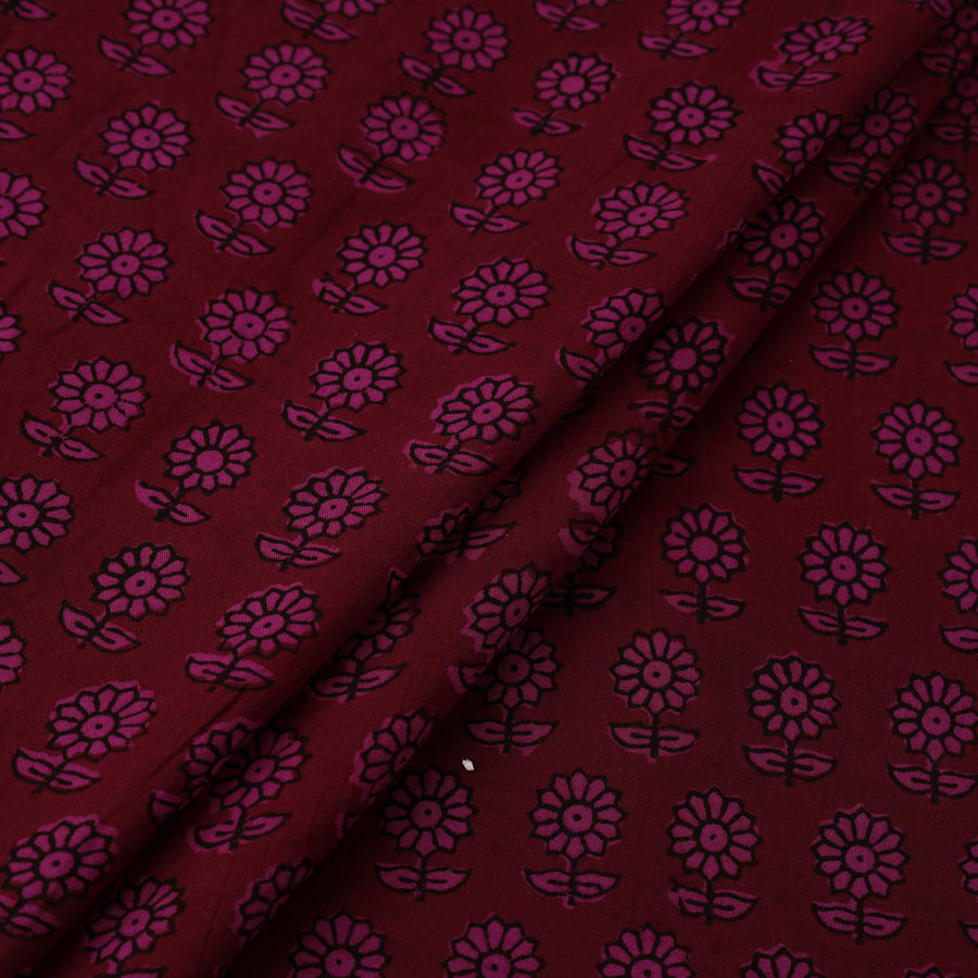 Experience the timeless artistry of maroon bagh printing with this exquisite fabric, skillfully hand block printed by master artisan Umar Faruk Khatri from Bagh, Madhya Pradesh. Made from soft mul cotton and adorned with natural dyes, it features a mesmerizing blend of floral and geometric patterns. Its airy and lightweight texture makes it an excellent choice for both traditional and modern fashion styles.