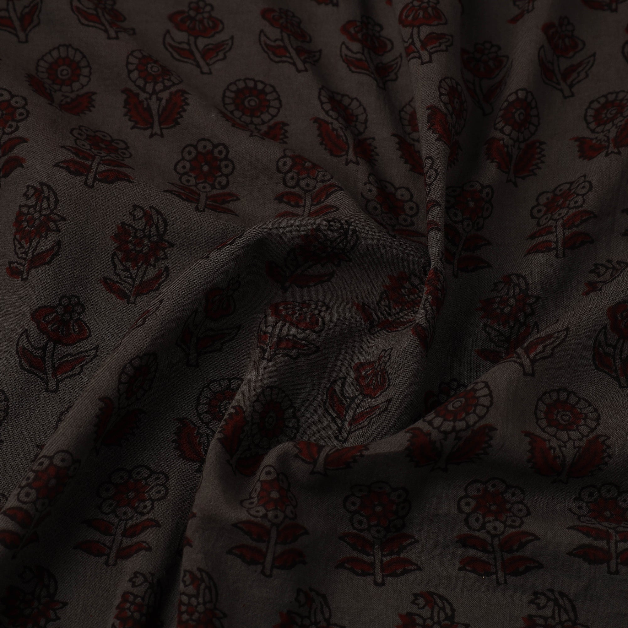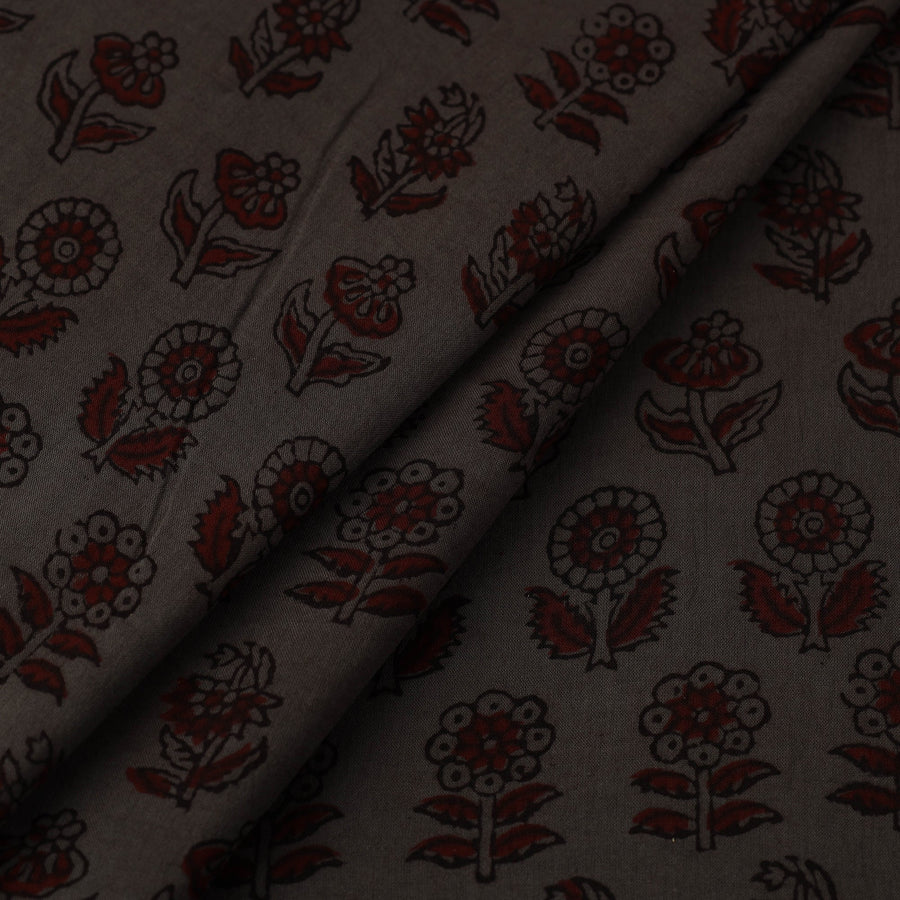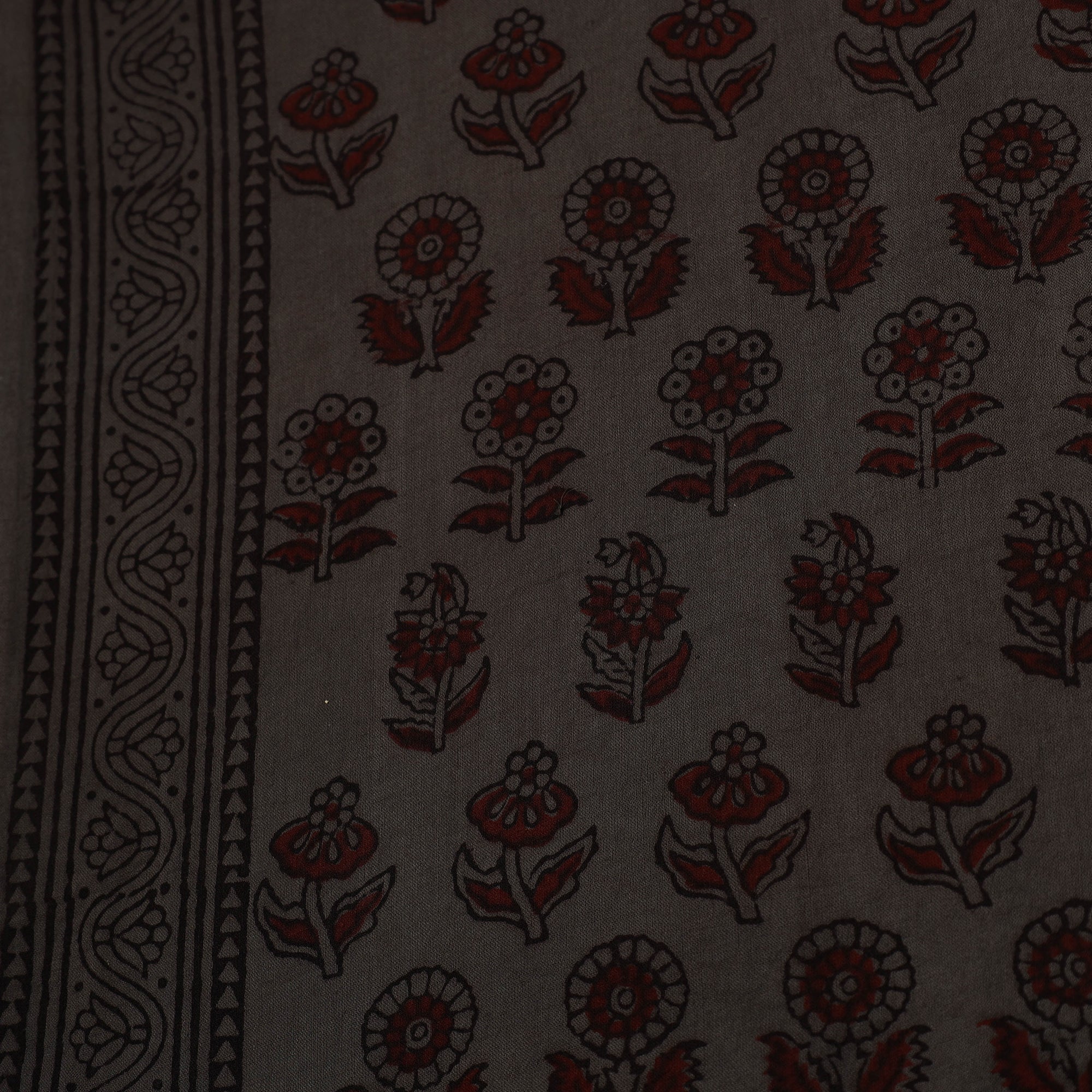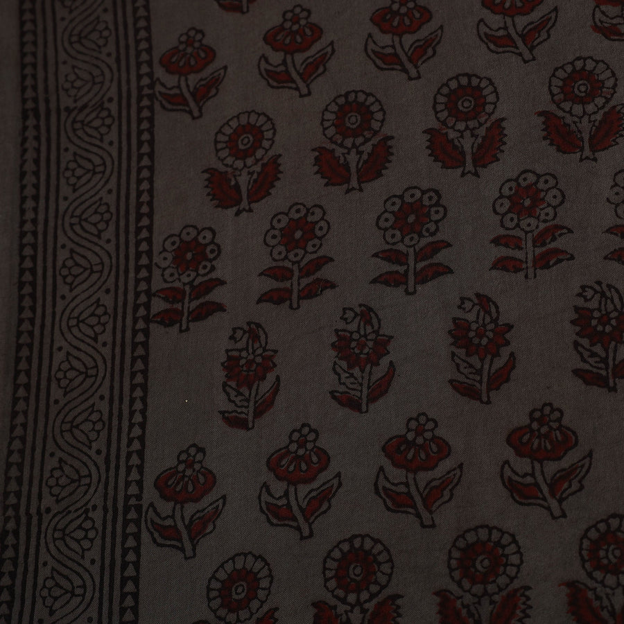 Experience the timeless artistry of grey bagh printing with this exquisite fabric, skillfully hand block printed by master artisan Umar Faruk Khatri from Bagh, Madhya Pradesh. Made from soft mul cotton and adorned with natural dyes, it features a mesmerizing blend of floral and geometric patterns. Its airy and lightweight texture makes it an excellent choice for both traditional and modern fashion styles.