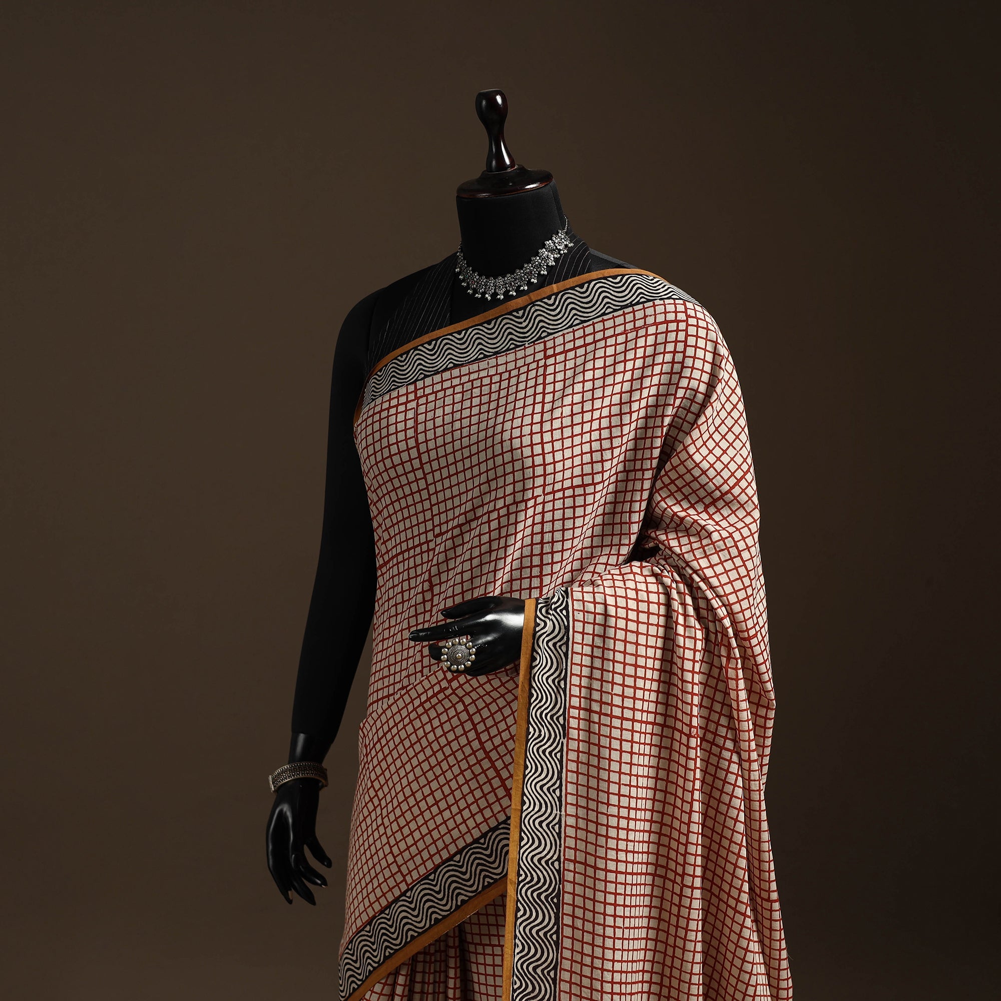Traditional bagru block printing saree created by skilled artisans from Bagru, a village near Jaipur in Rajasthan, this printing style has been practiced for generations using hand-carved wooden blocks and natural dyes. The mul cotton saree keeps it breathable and comfortable for long hours, making it ideal for everyday elegance, workwear or subtle festive dressing.