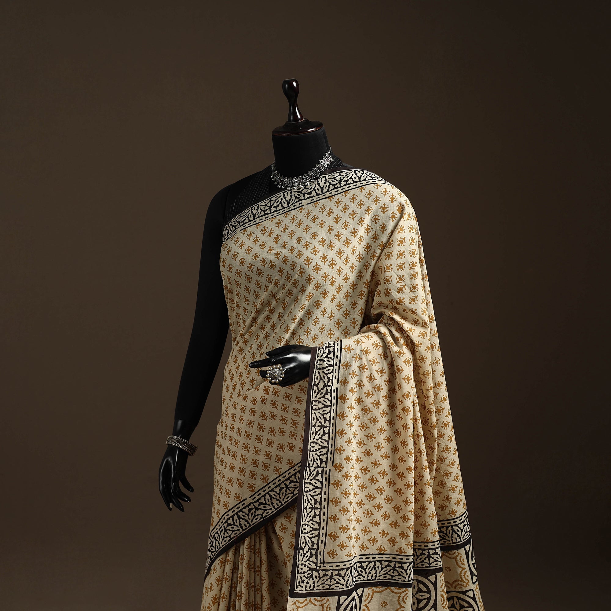 Traditional bagru block printing saree created by skilled artisans from Bagru, a village near Jaipur in Rajasthan, this printing style has been practiced for generations using hand-carved wooden blocks and natural dyes. The mul cotton saree keeps it breathable and comfortable for long hours, making it ideal for everyday elegance, workwear or subtle festive dressing.
