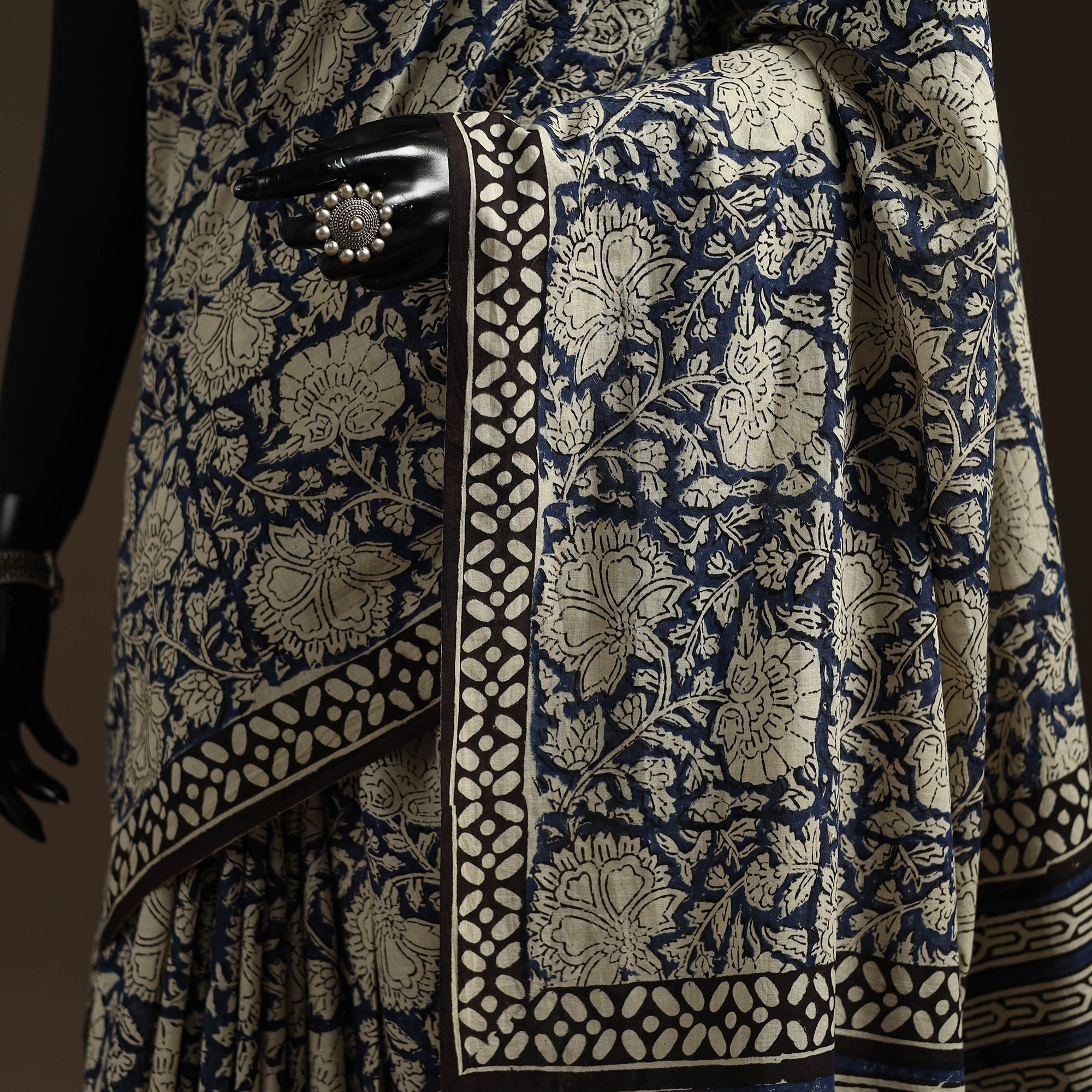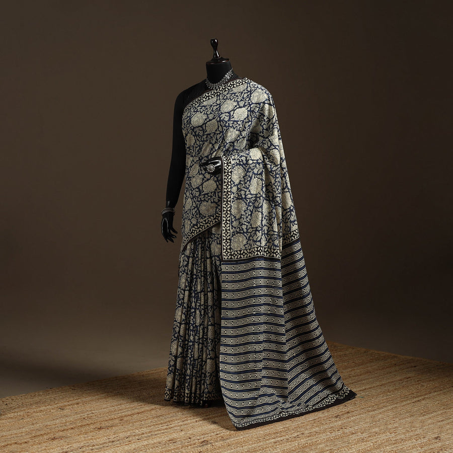 • Natural dyed mul cotton hand bagru saree 19 - handcrafted