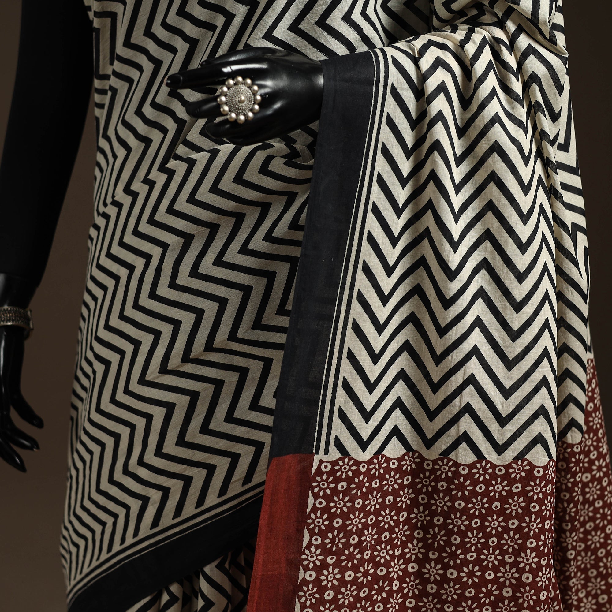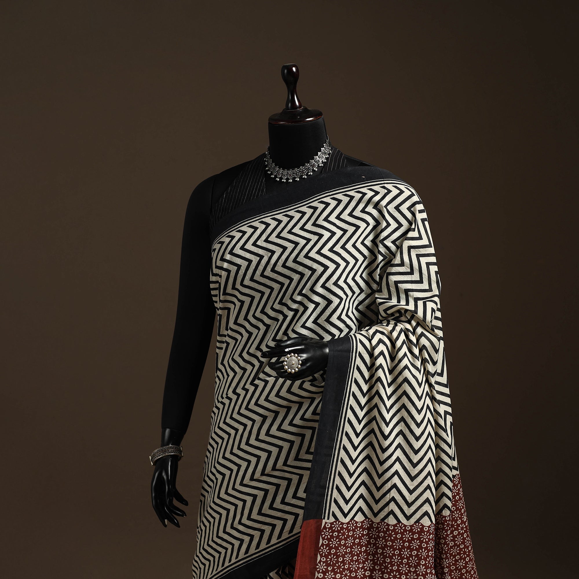 Traditional bagru block printing saree created by skilled artisans from Bagru, a village near Jaipur in Rajasthan, this printing style has been practiced for generations using hand-carved wooden blocks and natural dyes. The mul cotton saree keeps it breathable and comfortable for long hours, making it ideal for everyday elegance, workwear or subtle festive dressing.