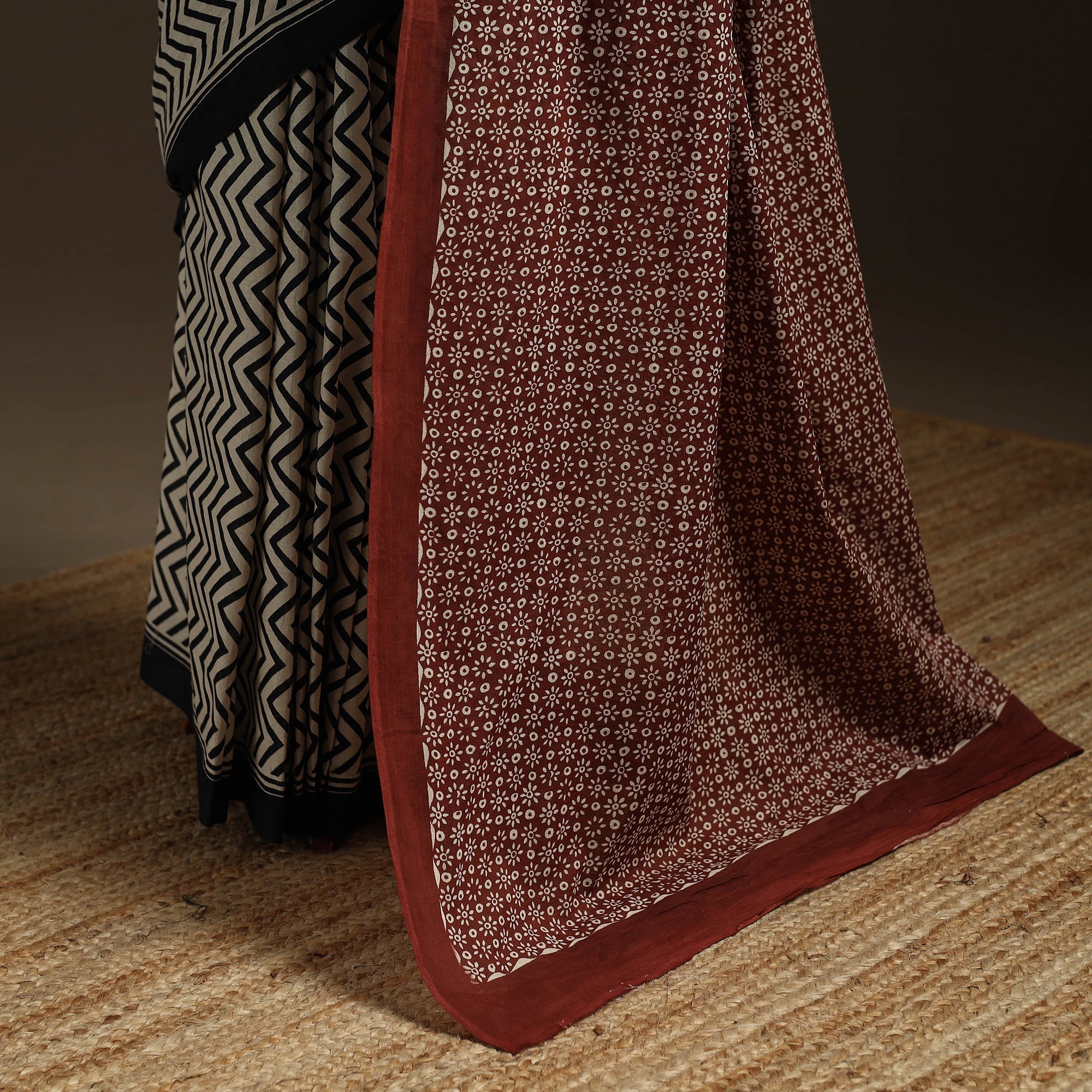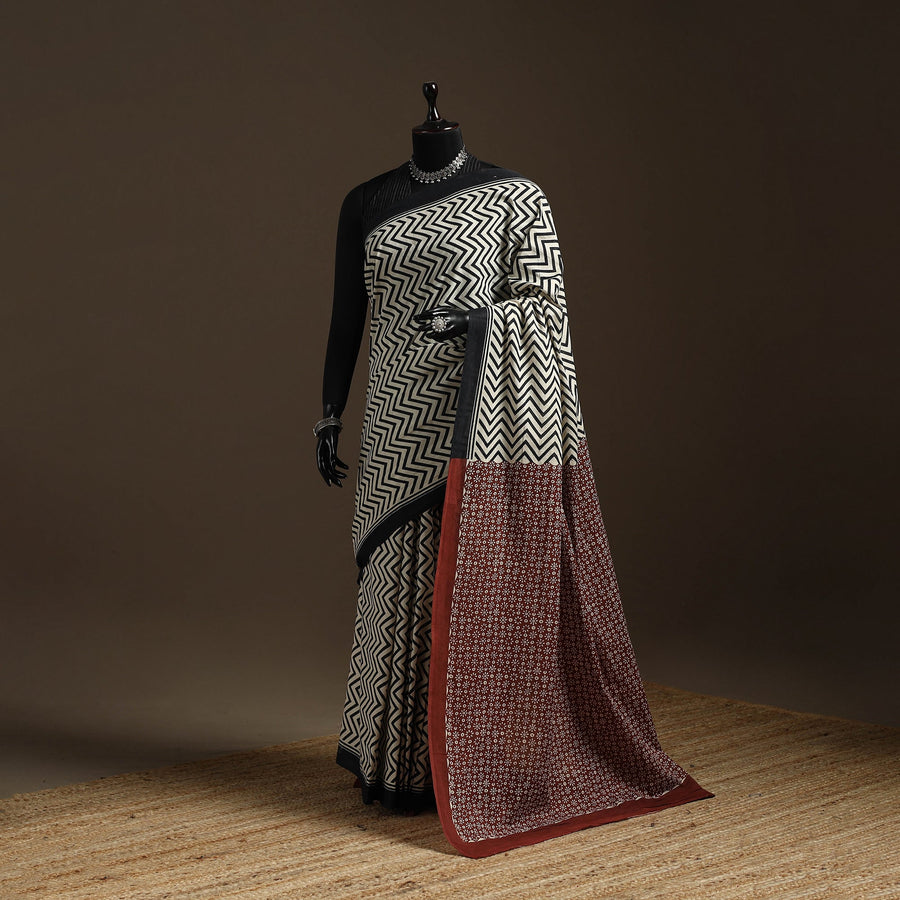 • Natural dyed mul cotton hand bagru saree 22 - handcrafted