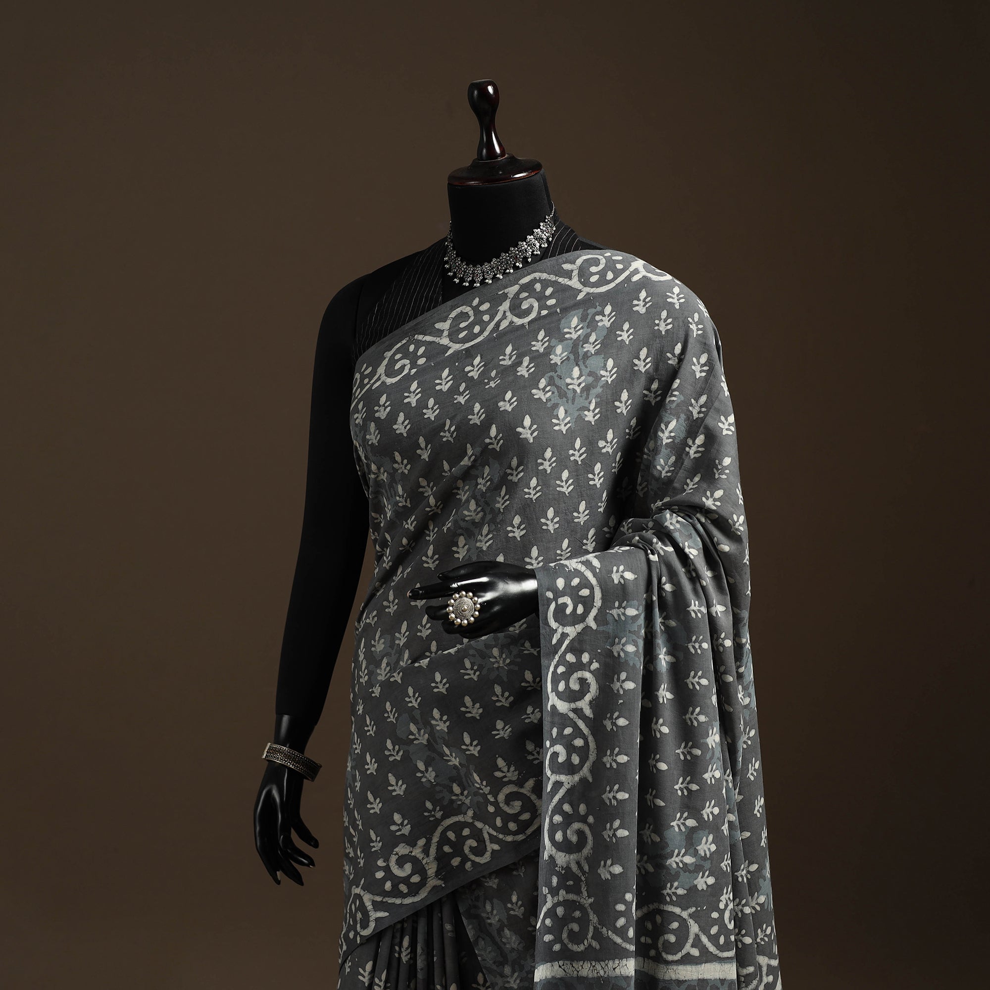 Traditional bagru block printing saree created by skilled artisans from Bagru, a village near Jaipur in Rajasthan, this printing style has been practiced for generations using hand-carved wooden blocks and natural dyes. The mul cotton saree keeps it breathable and comfortable for long hours, making it ideal for everyday elegance, workwear or subtle festive dressing.