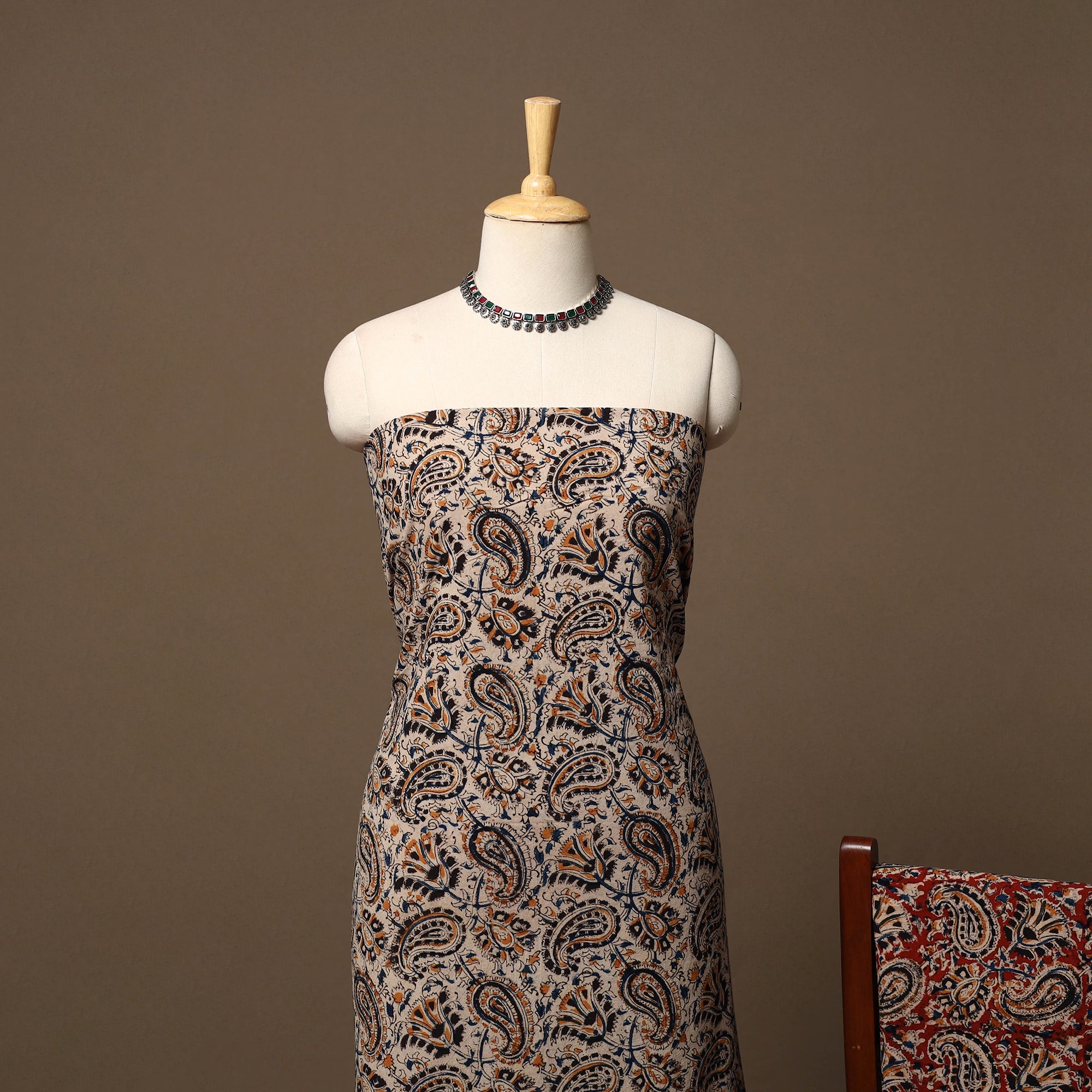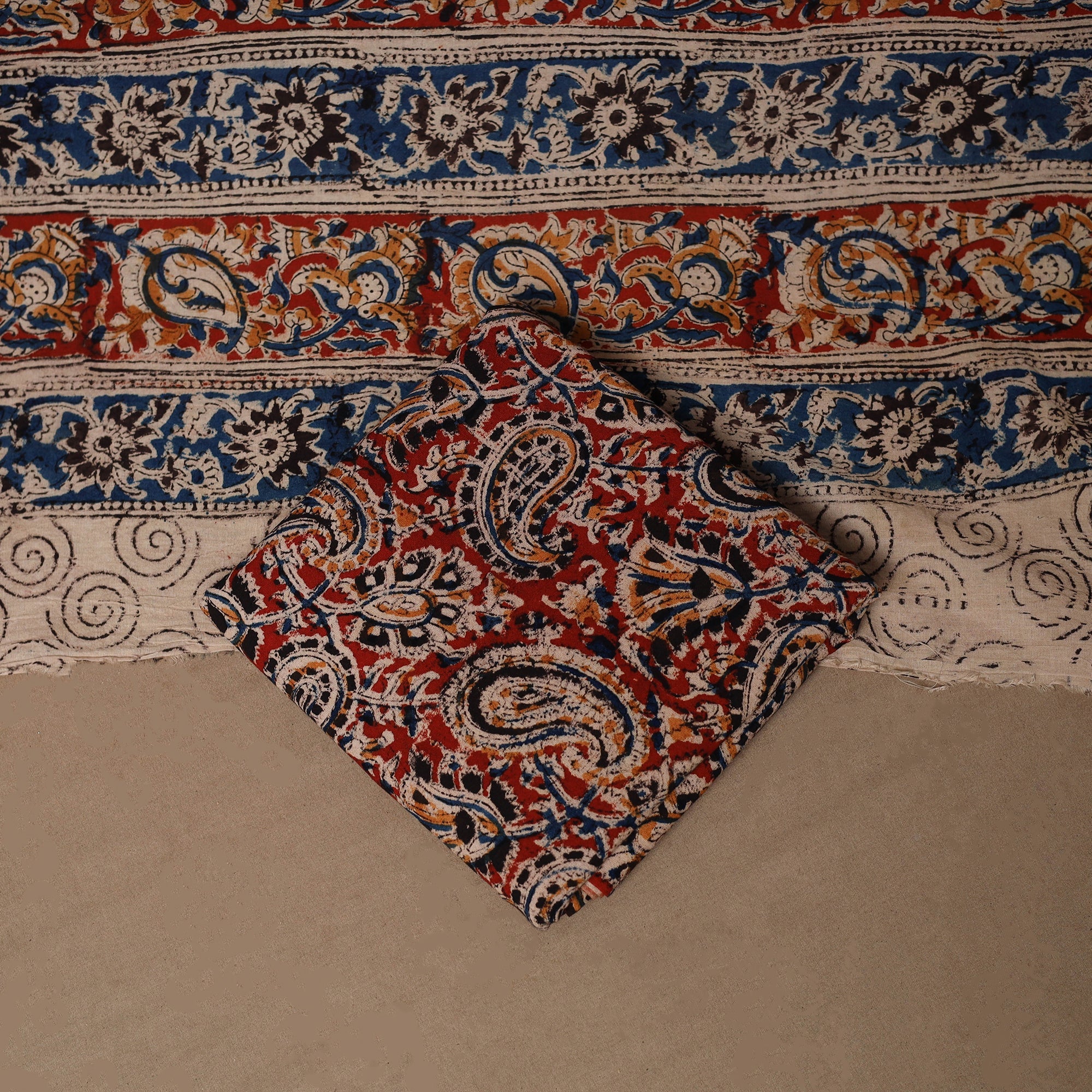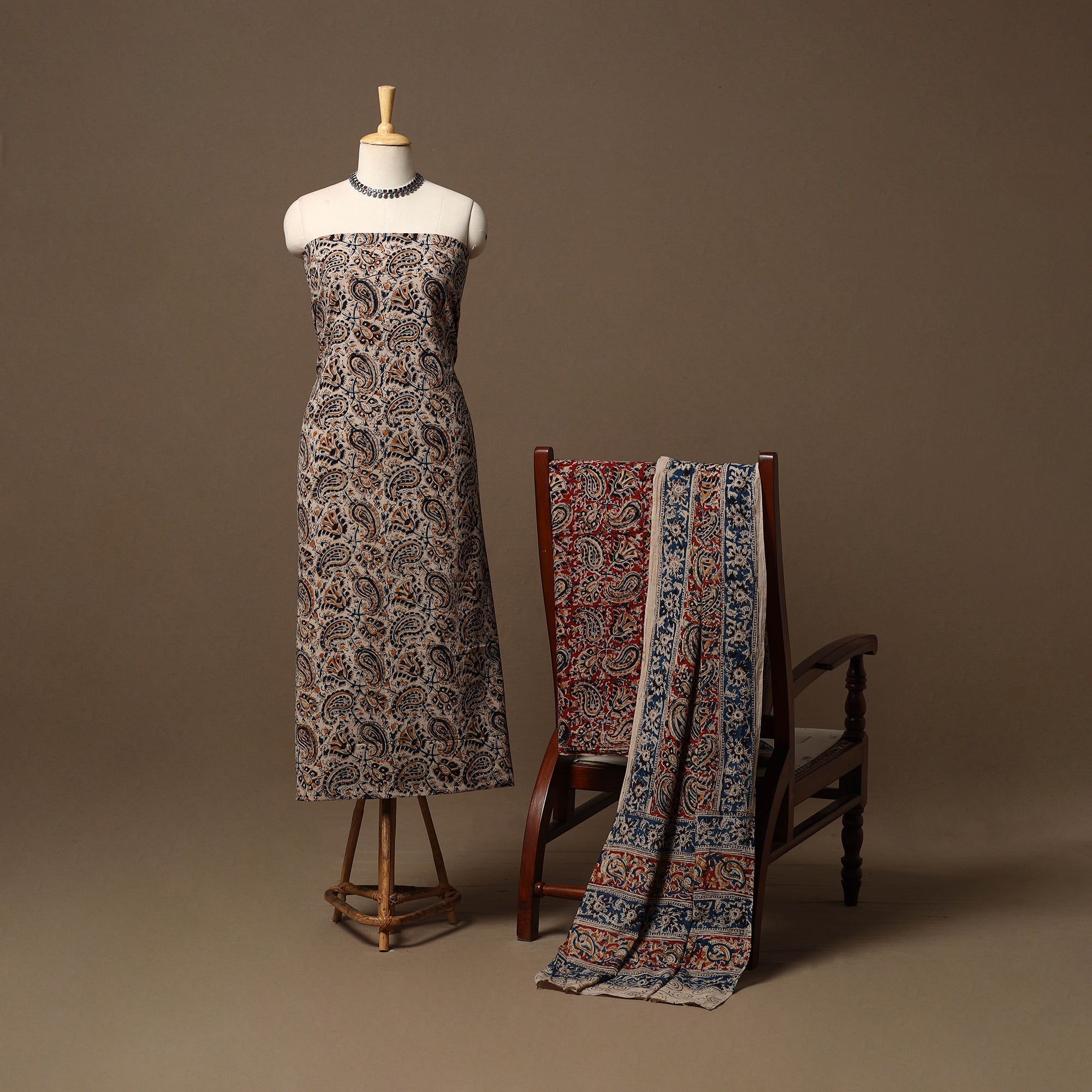 Natural Dyed Pedana Block Print Kalamkari Cotton 3pc Unstitched Dress Material 03
