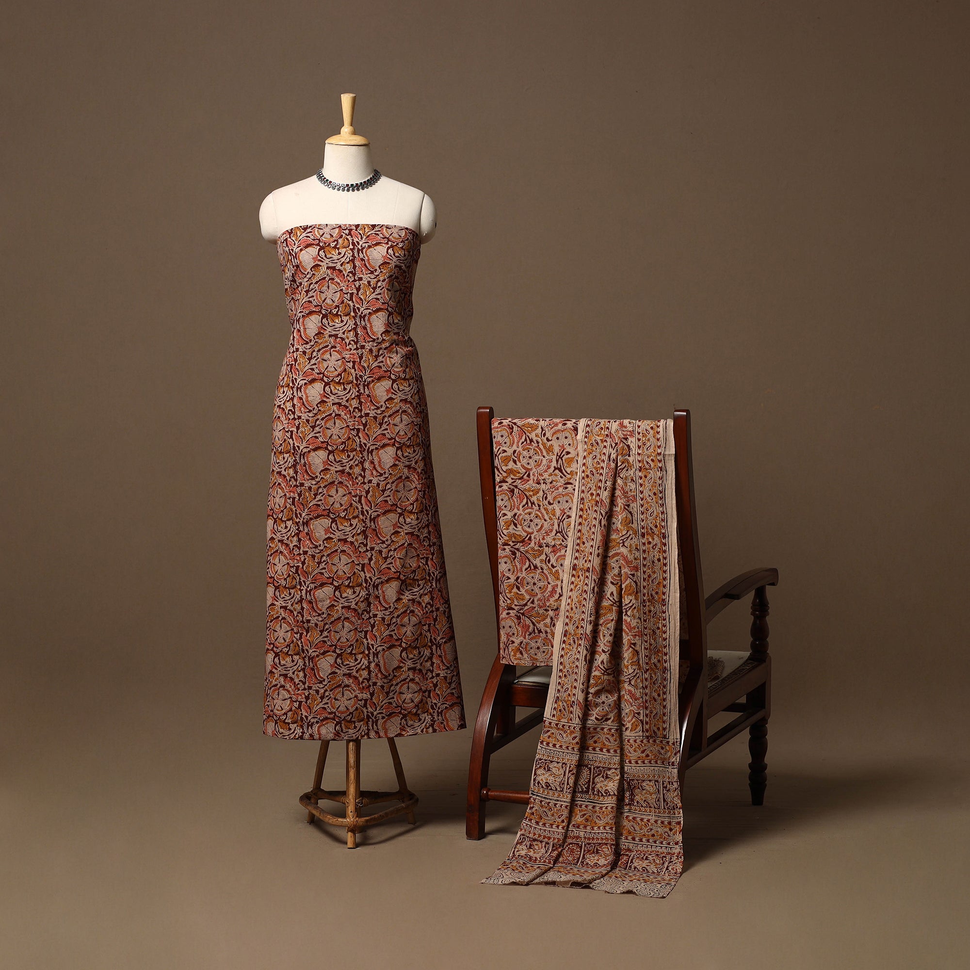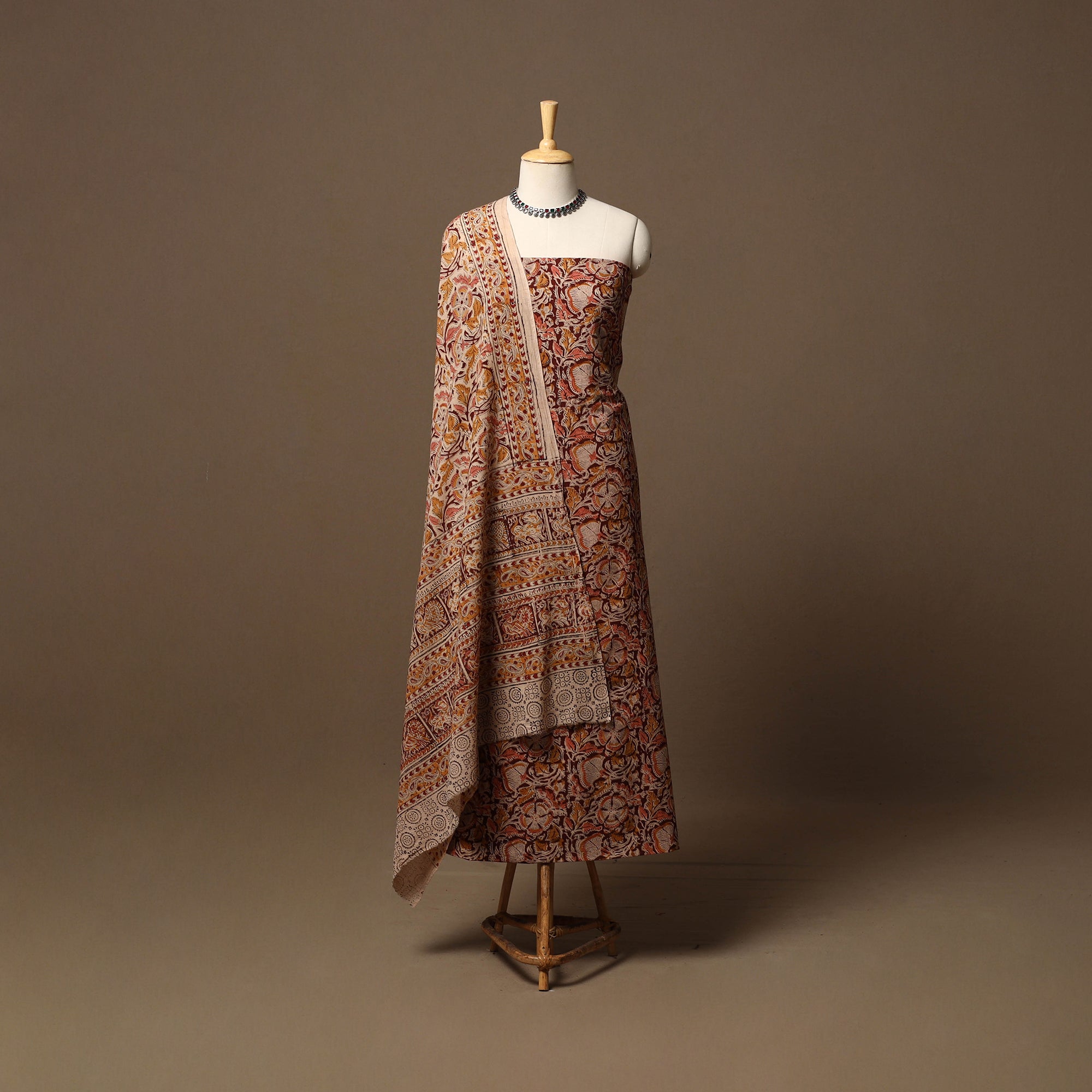 • Natural dyed pedana kalamkari cotton 3pc unstitched dress