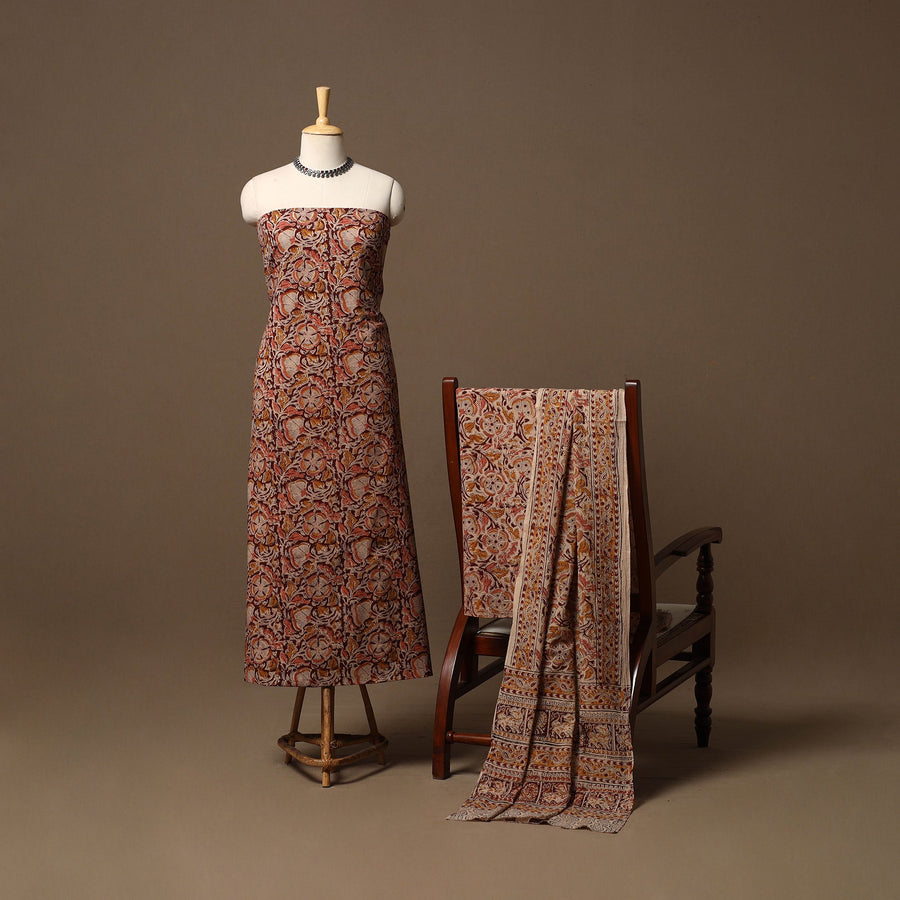 Natural Dyed Pedana Block Print Kalamkari Cotton 3pc Unstitched Dress Material 04