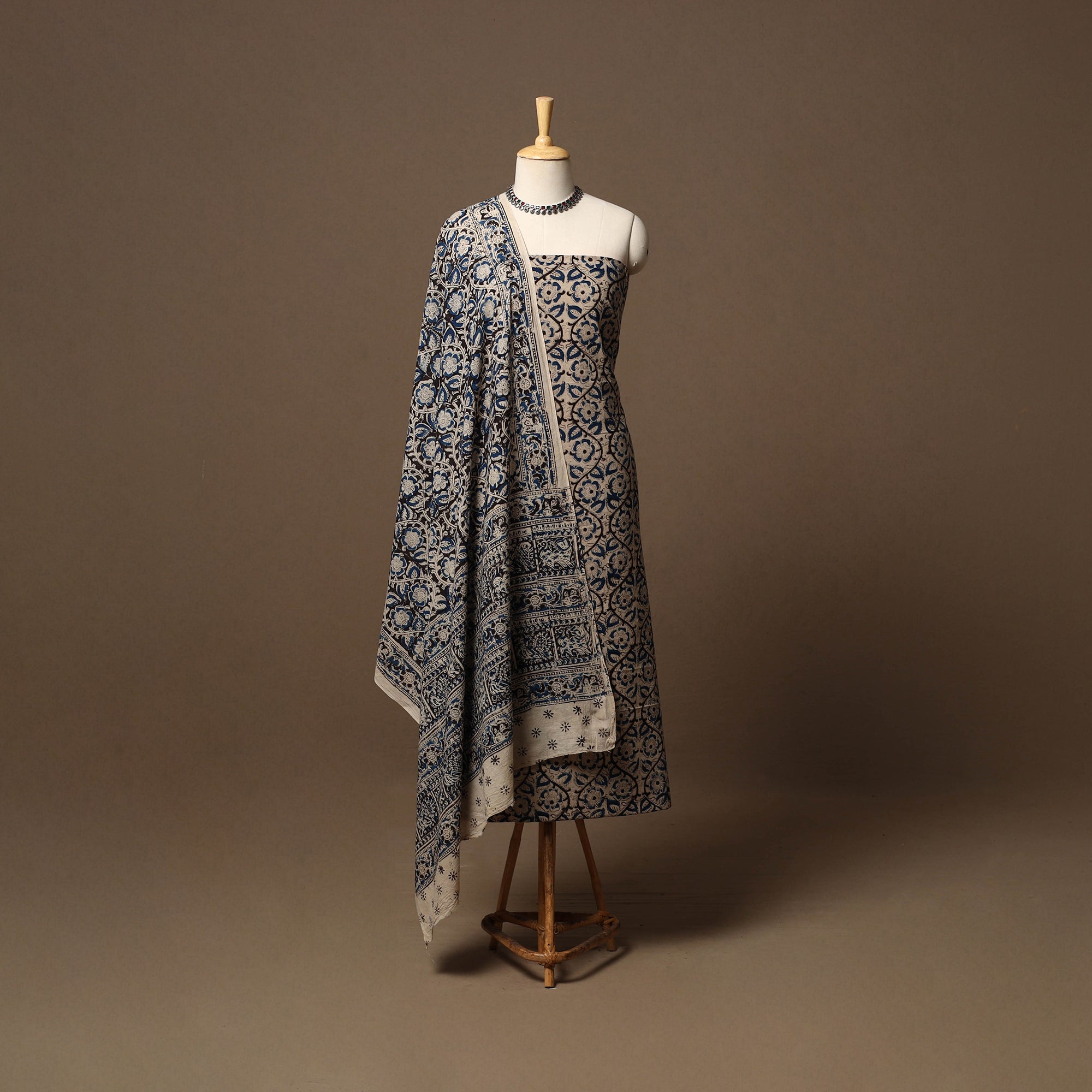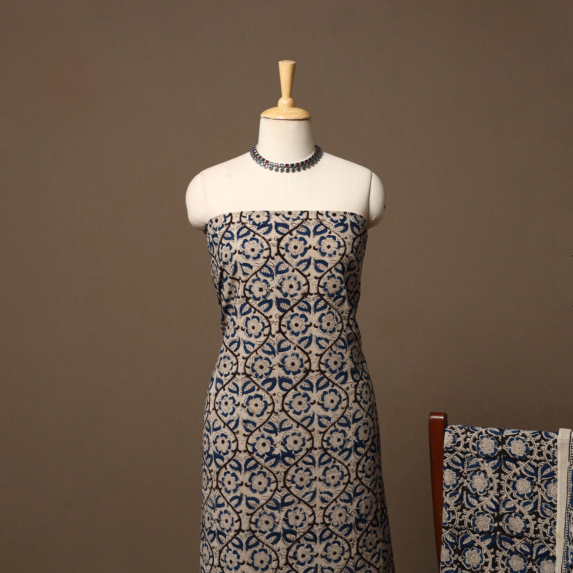 Natural Dyed Pedana Block Print Kalamkari Cotton 3pc Unstitched Dress Material 08