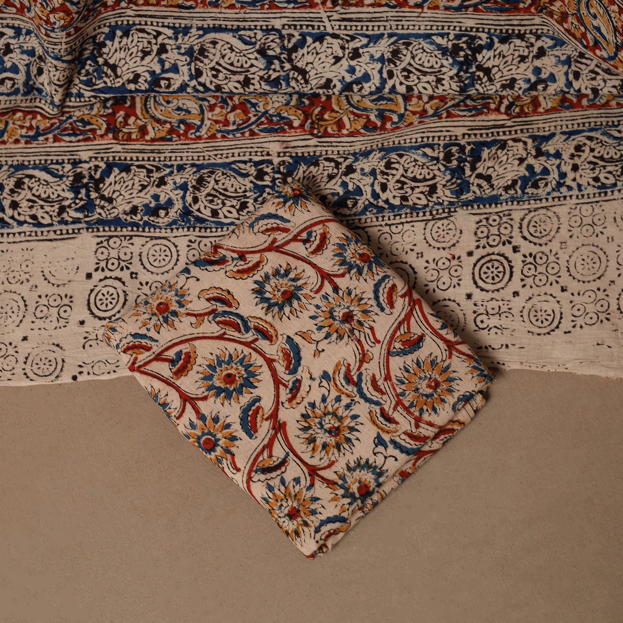 Natural Dyed Pedana Block Print Kalamkari Cotton 3pc Unstitched Dress Material 09