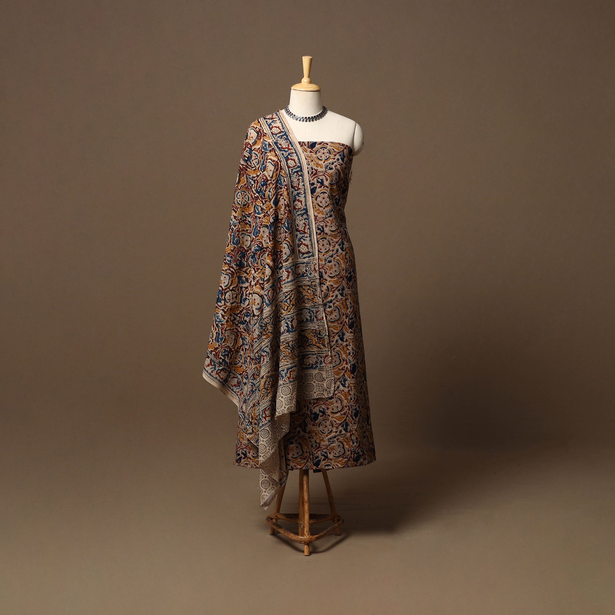 • Natural dyed pedana kalamkari cotton 3pc unstitched dress