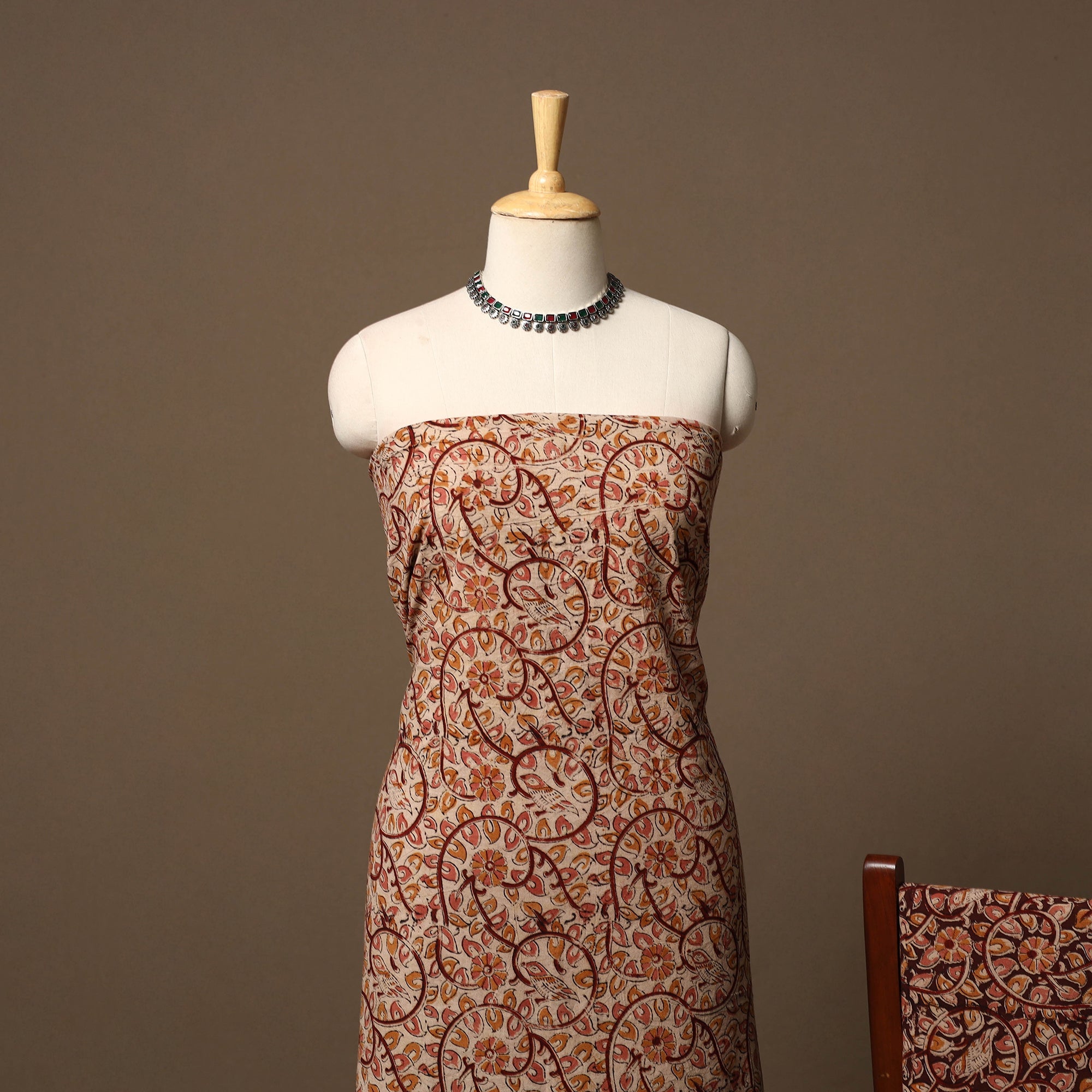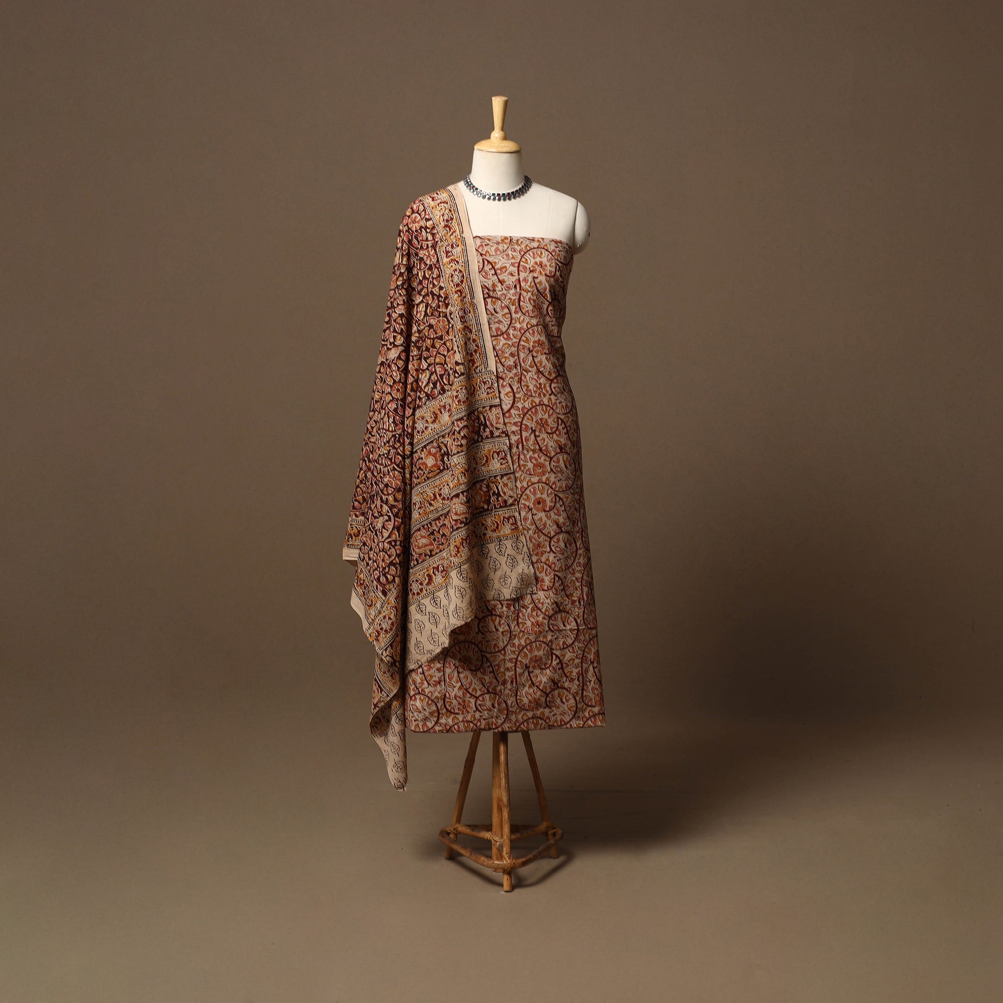 Natural Dyed Pedana Block Print Kalamkari Cotton 3pc Unstitched Dress Material 13