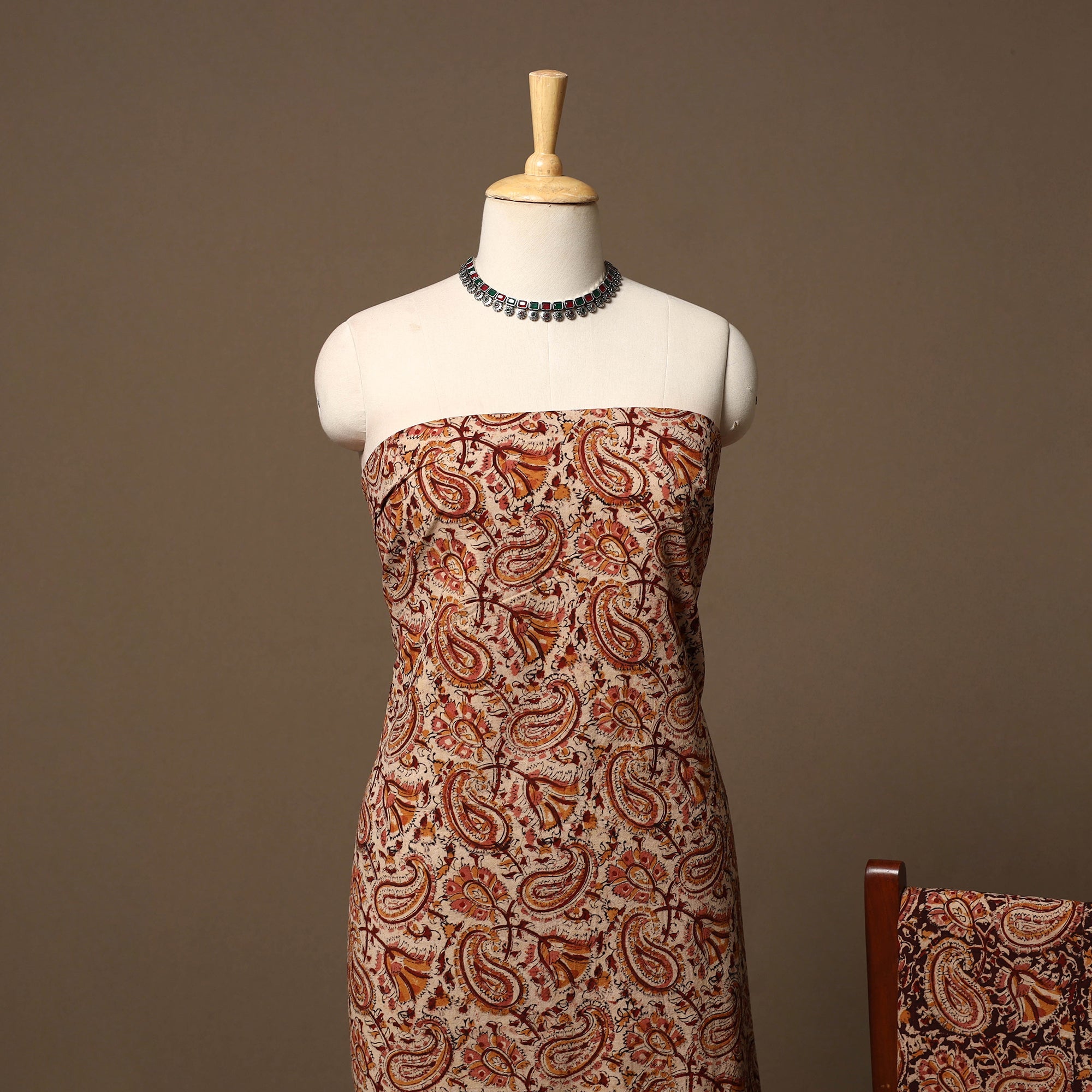 3pc pedana hand block printed kalamkari natural dyed cotton dress material set is created by skilled artisans from Pedana, known for their centuries-old kalamkari block printing tradition. Using hand-carved wooden blocks, the kurta fabric is printed with intricate motifs and paired with a matching dupatta and bottom, offering breathable comfort for everyday and occasion wear.