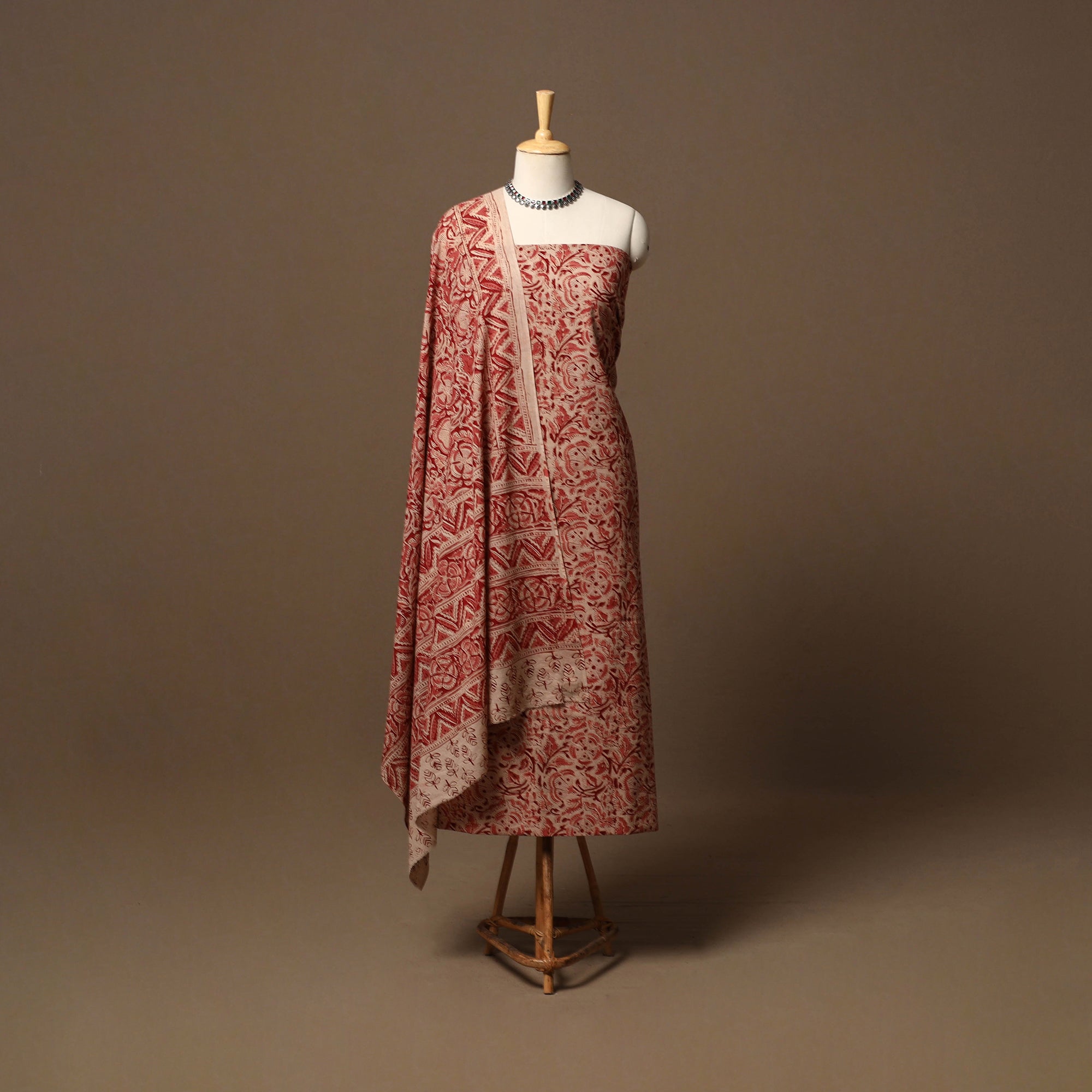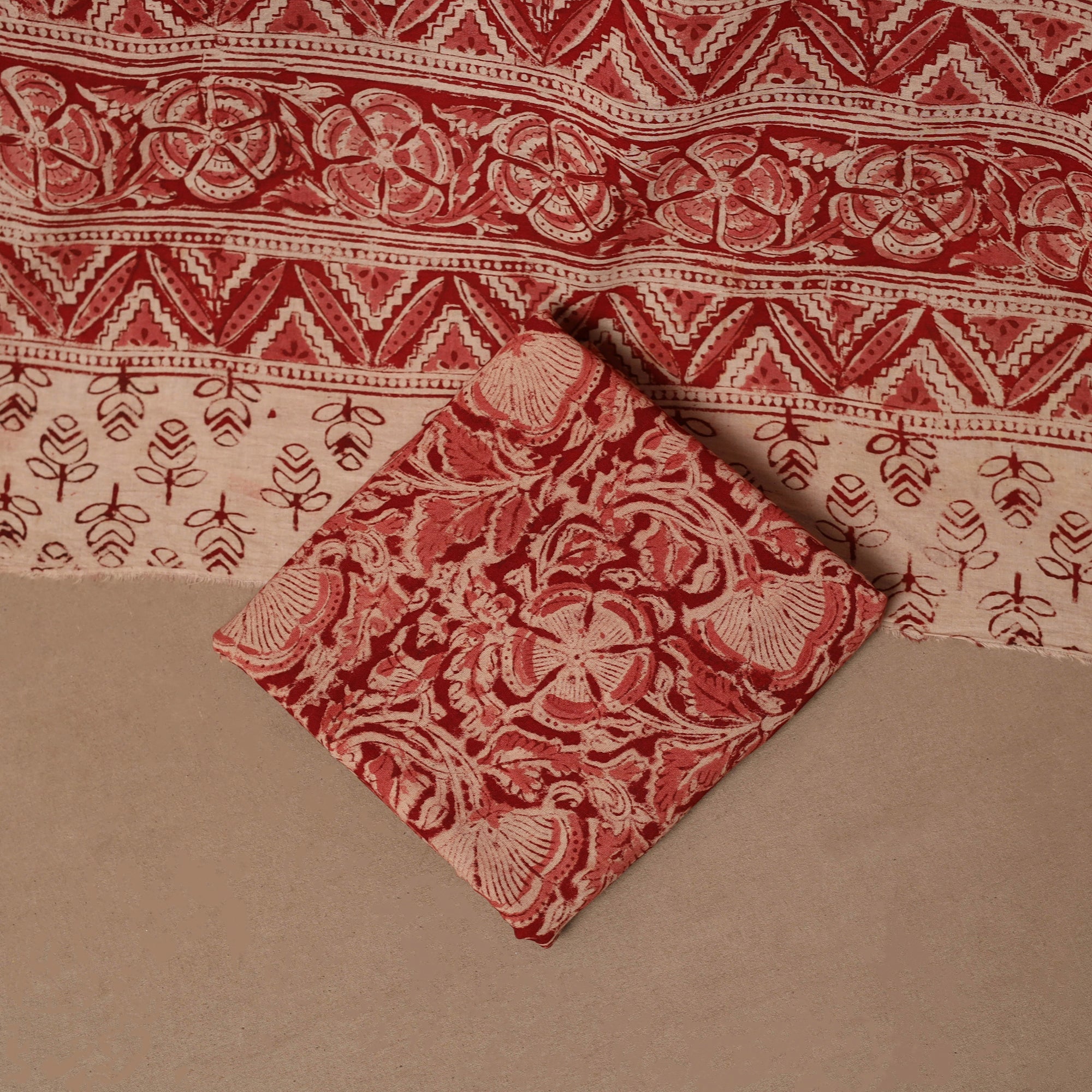 Natural Dyed Pedana Block Print Kalamkari Cotton 3pc Unstitched Dress Material 23