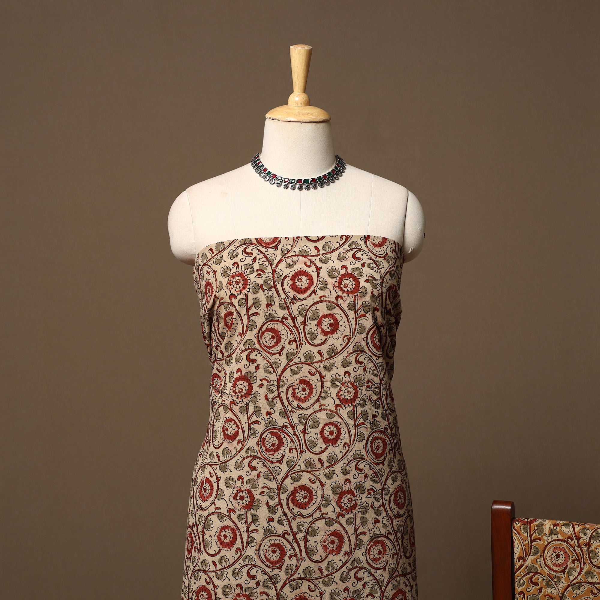 Kalamkari is a type of hand-painted or printed cotton fabric produced in Andhra Pradesh. This is a traditional printing method on cotton fabrics using natural materials without adding chemicals to cotton fabrics.