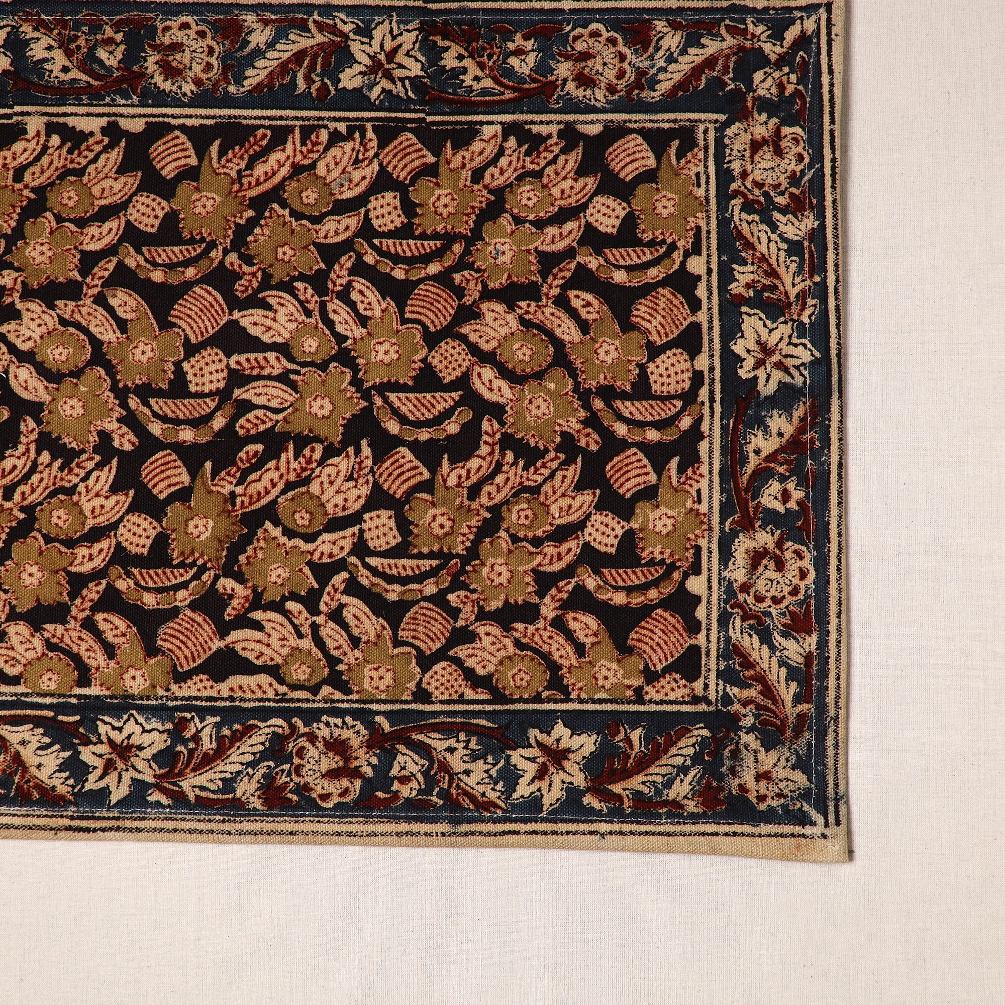 Black - Natural Dyed Pedana Kalamkari Block Print Cotton Table Mat 11