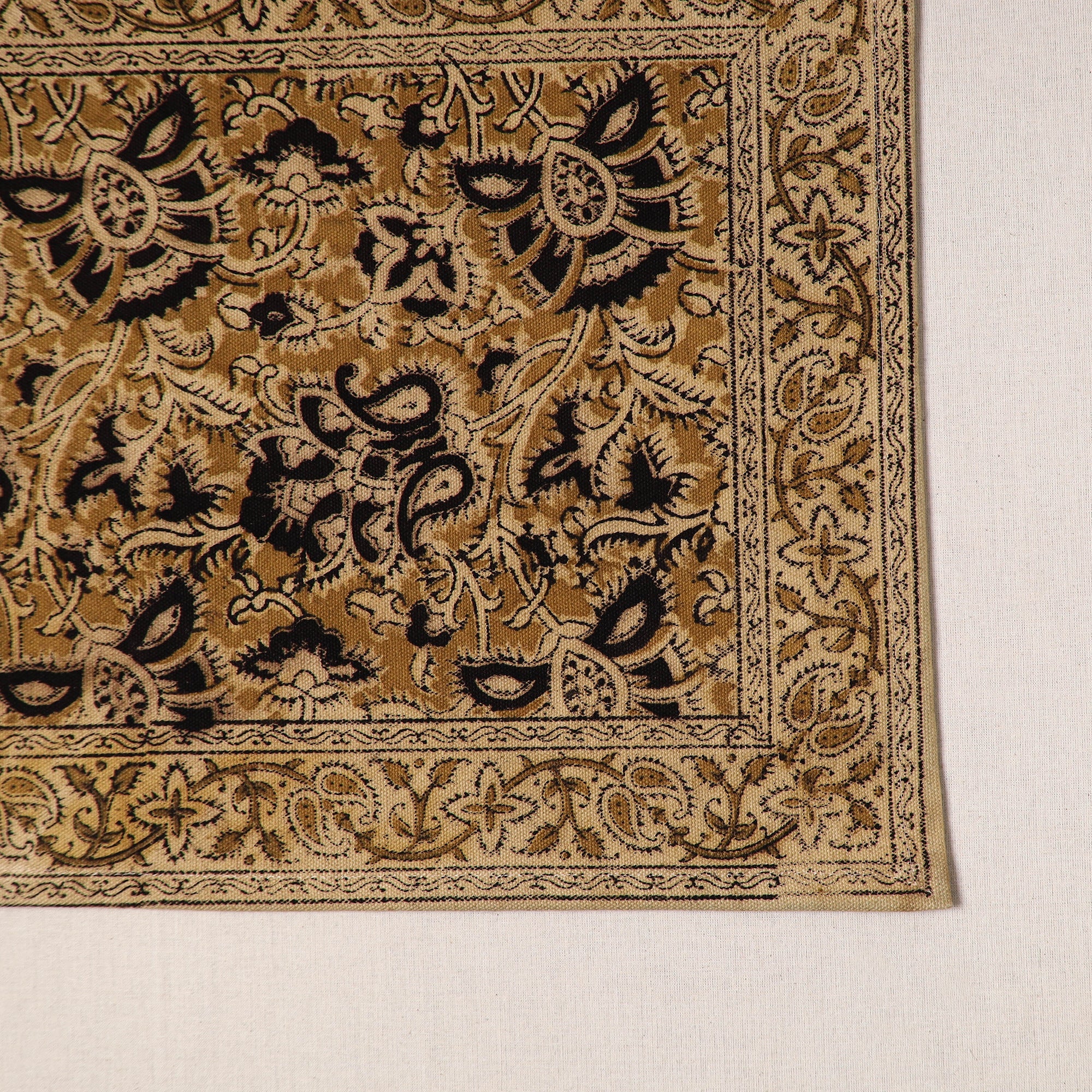 Fine-quality brown kalamkari block-printed, naturally dyed cotton table mat skillfully crafted by the artisans of Pedana. It features an assortment of hand block motifs inspired by traditional Kalamkari art. Perfect for dining tables or as decorative accents, this mat protects surfaces and adds a touch of artisanal charm to your home.