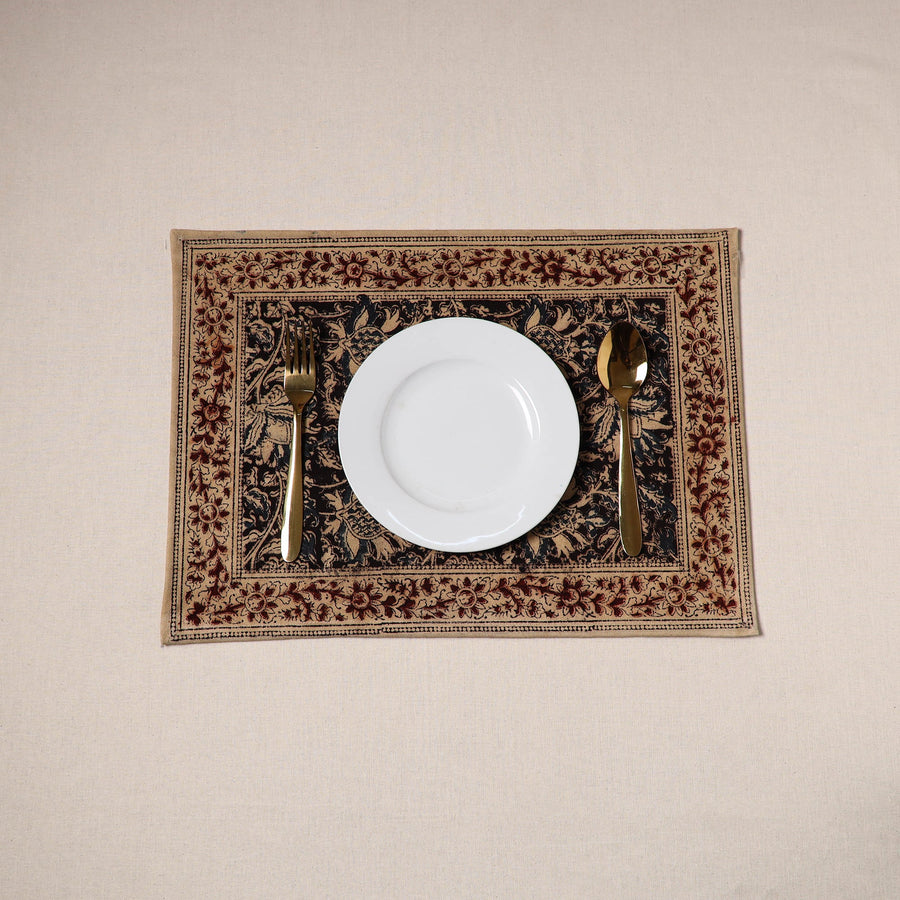 Black - Natural Dyed Pedana Kalamkari Block Print Cotton Table Mat 16