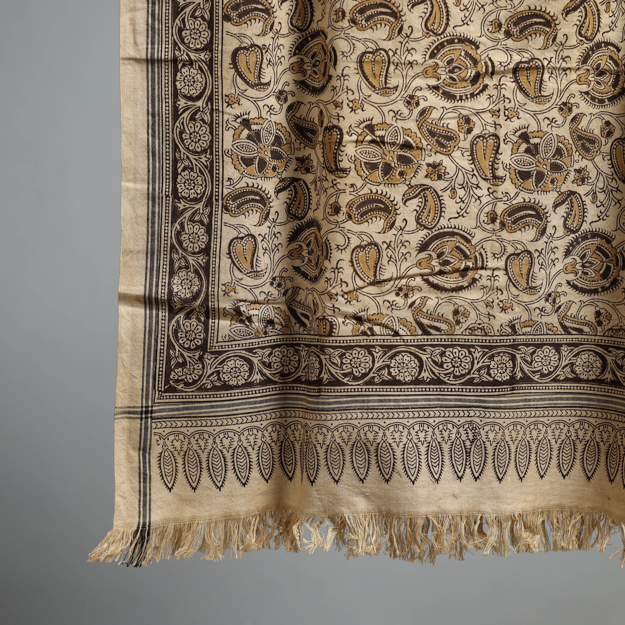 Beige - Natural Dyed Pedana Kalamkari Block Printed Handloom Cotton Towel 01