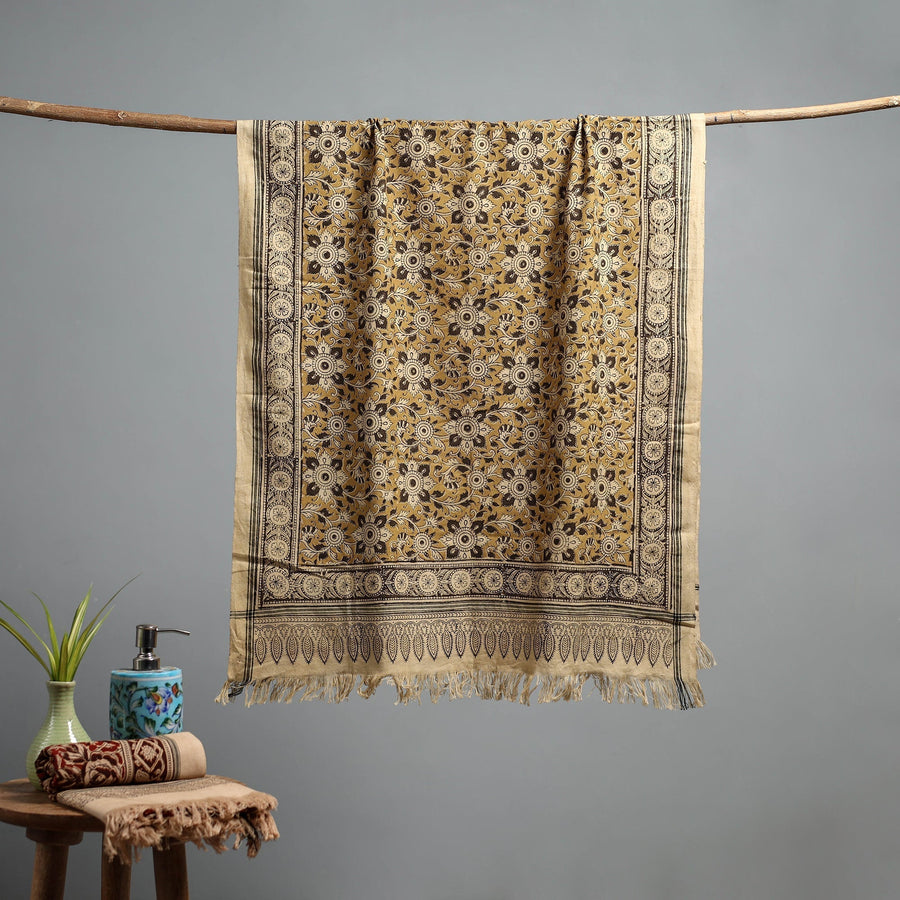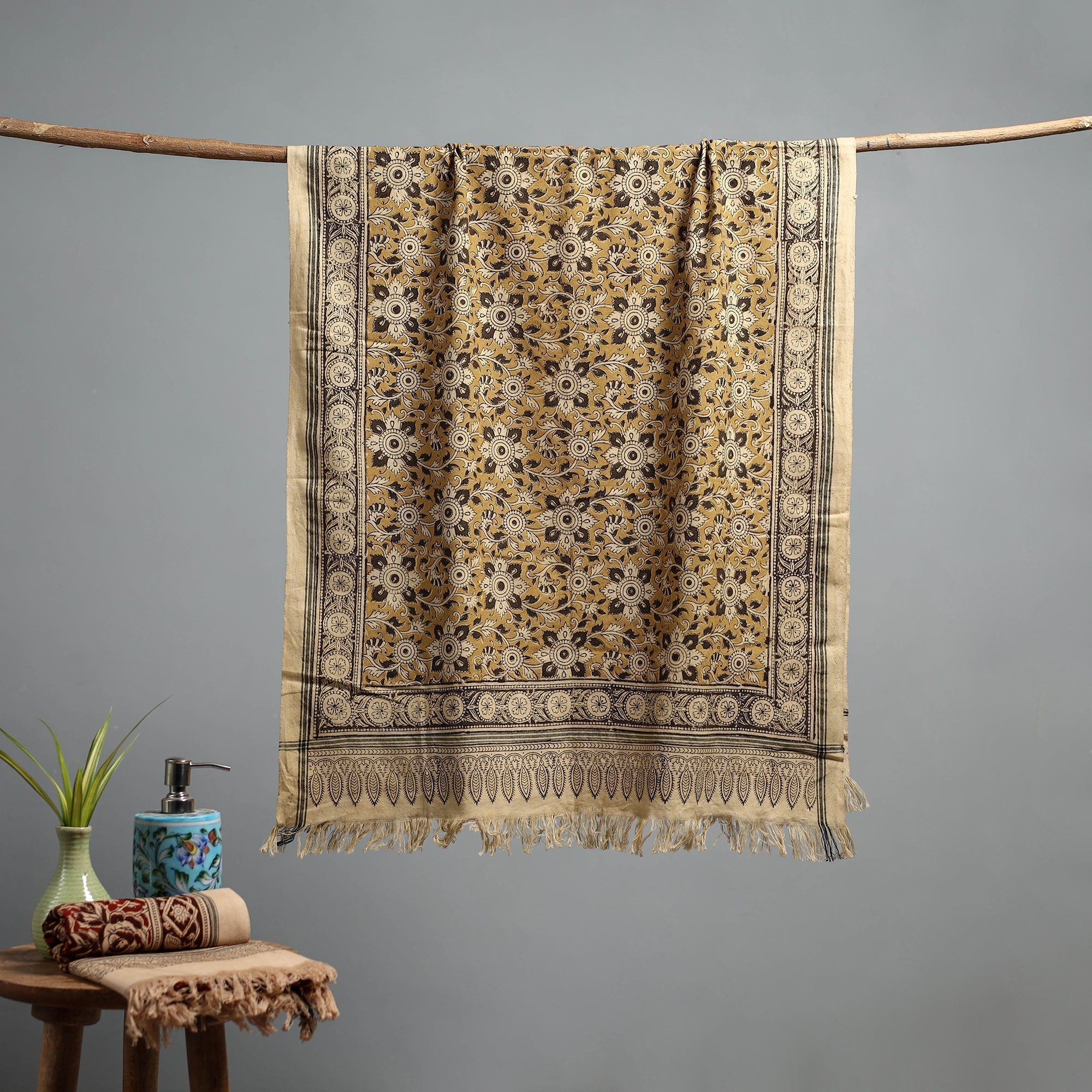 Yellow - Natural Dyed Pedana Kalamkari Block Printed Handloom Cotton Towel 02