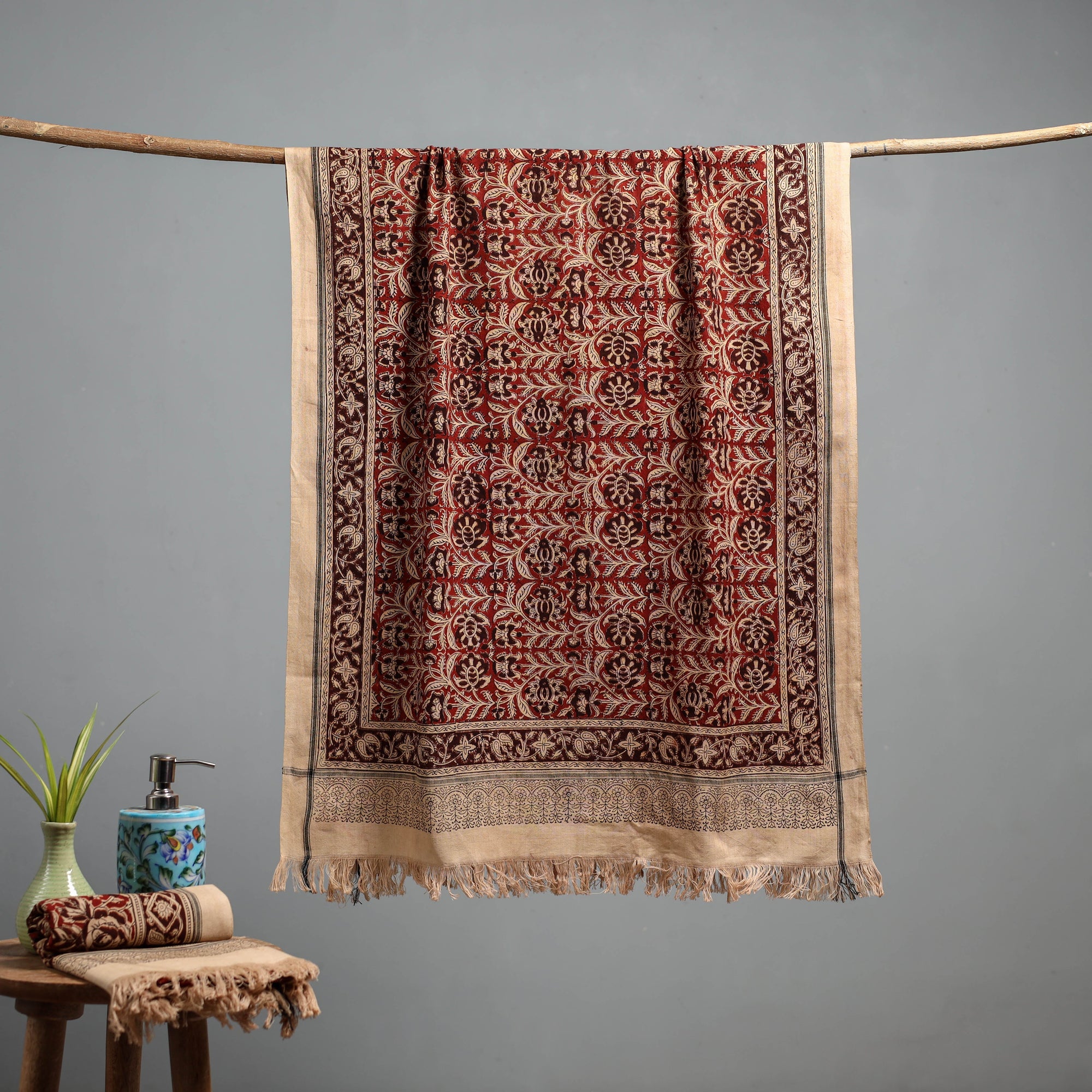 • Natural dyed pedana kalamkari printed handloom cotton towel