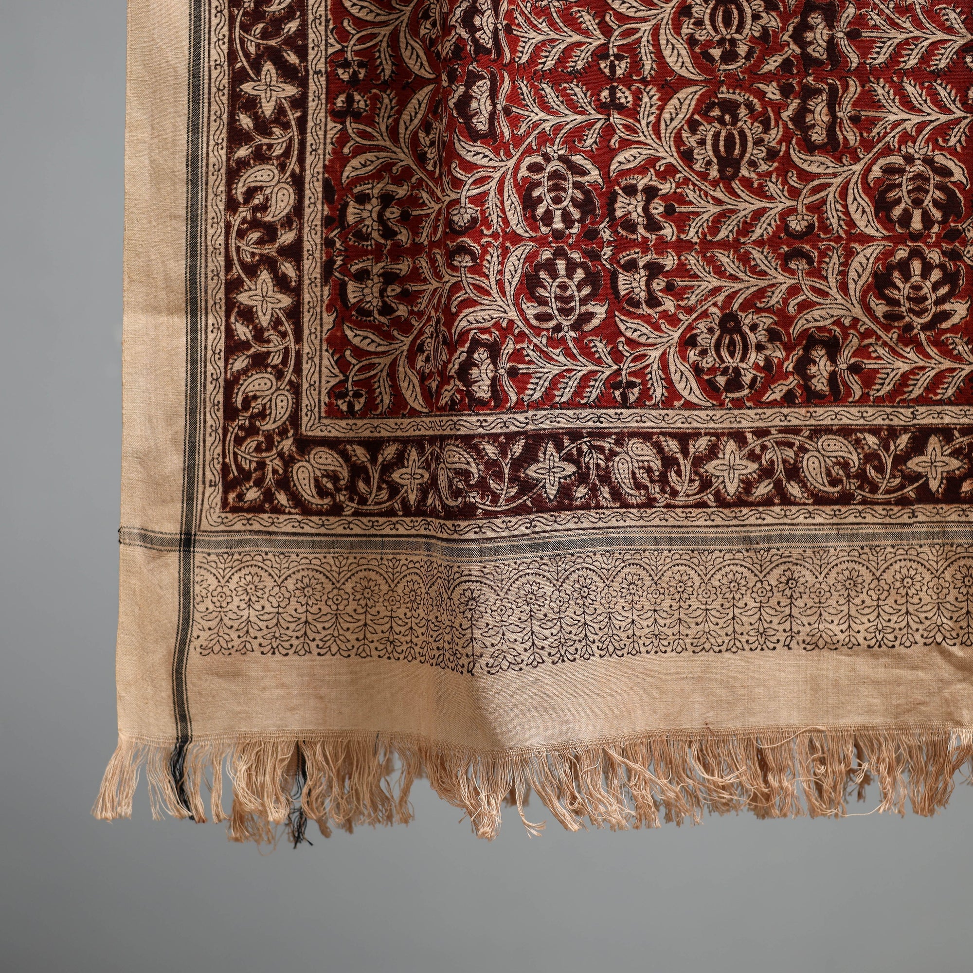 • Red - natural dyed pedana kalamkari printed handloom cotton