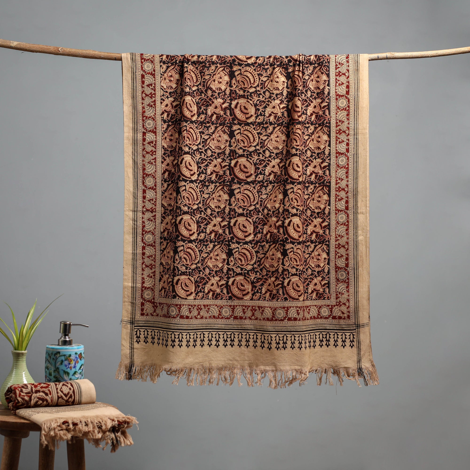 • Natural dyed pedana kalamkari printed handloom cotton towel