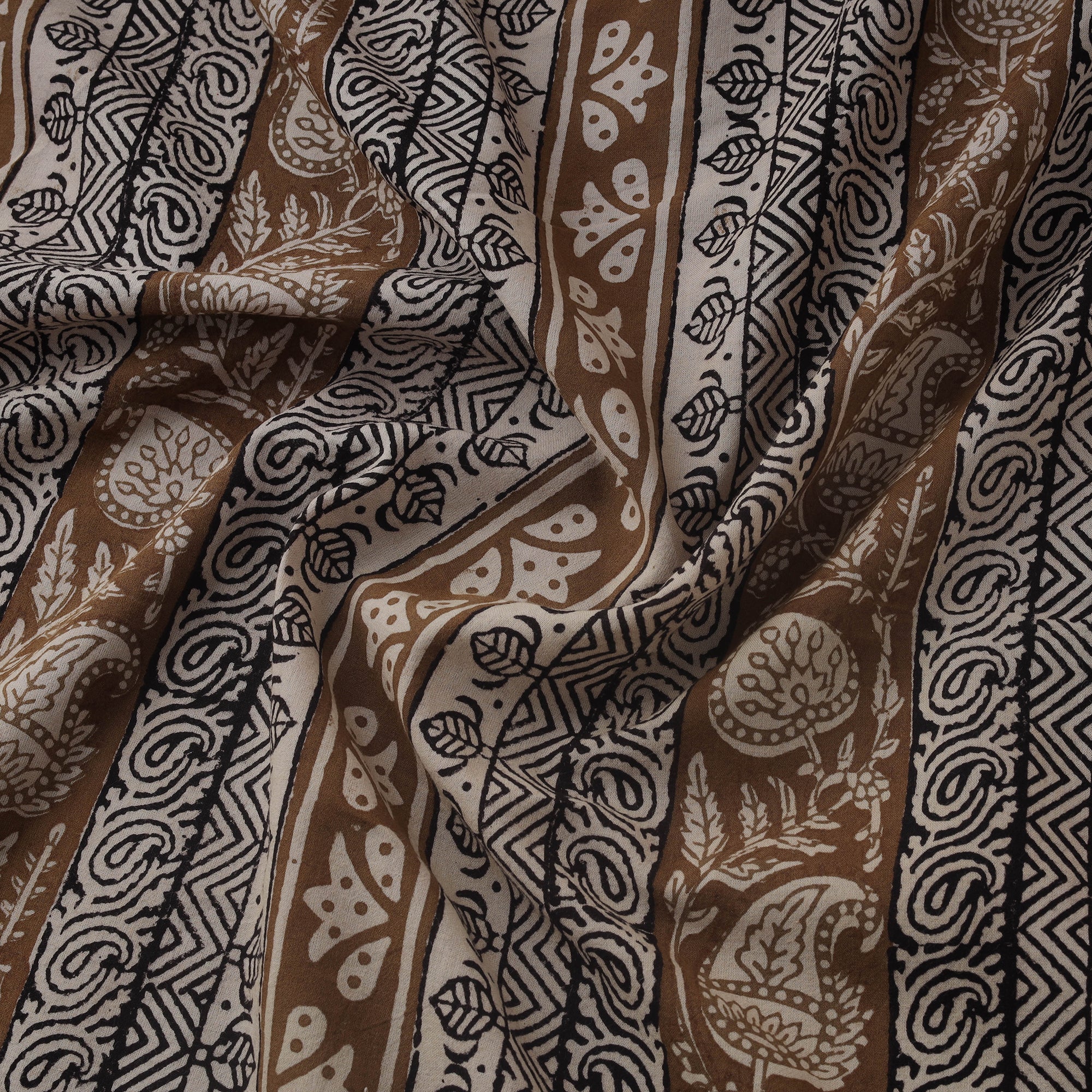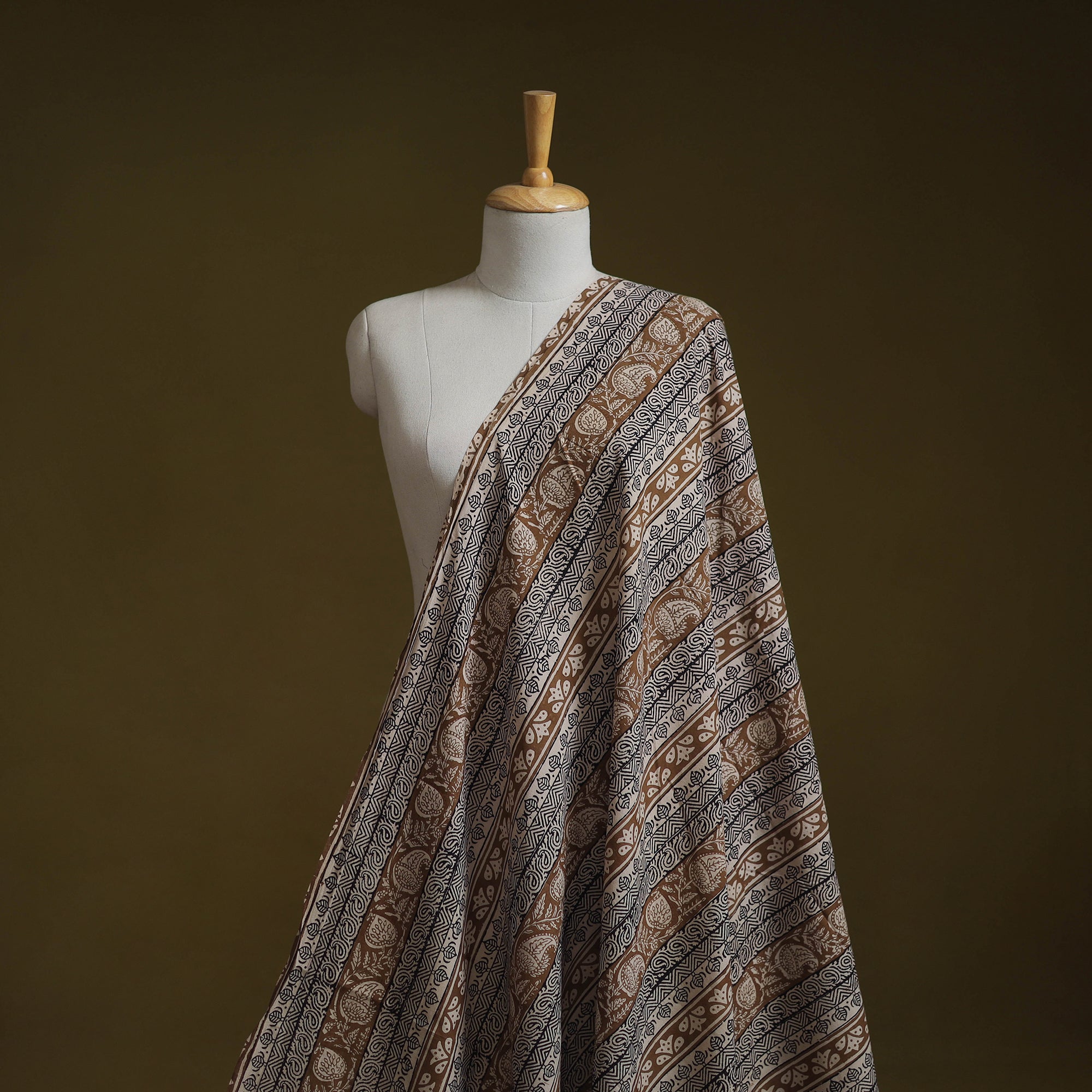 Bagh hand block print pure cotton fabric is created using a traditional printing technique from Madhya Pradesh practiced for centuries by artisans such as Abdul Kadar Khatri. Natural dyes and hand-carved wooden blocks produce intricate patterns reflecting the region’s heritage. This fabric suits sarees, suits, dupattas, kurtas, dresses, stoles, and home décor items.