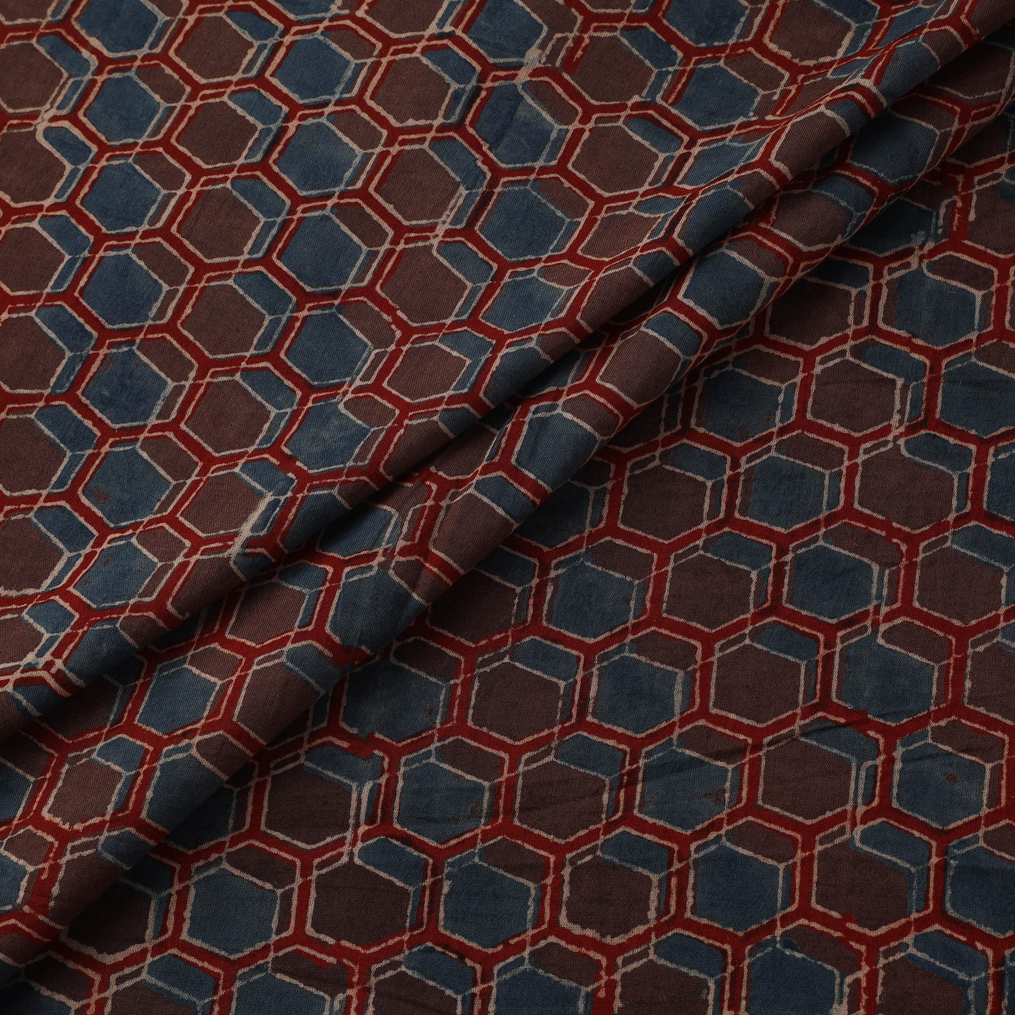 • Natural dyed pure mul cotton hand block ajrakh print fabric