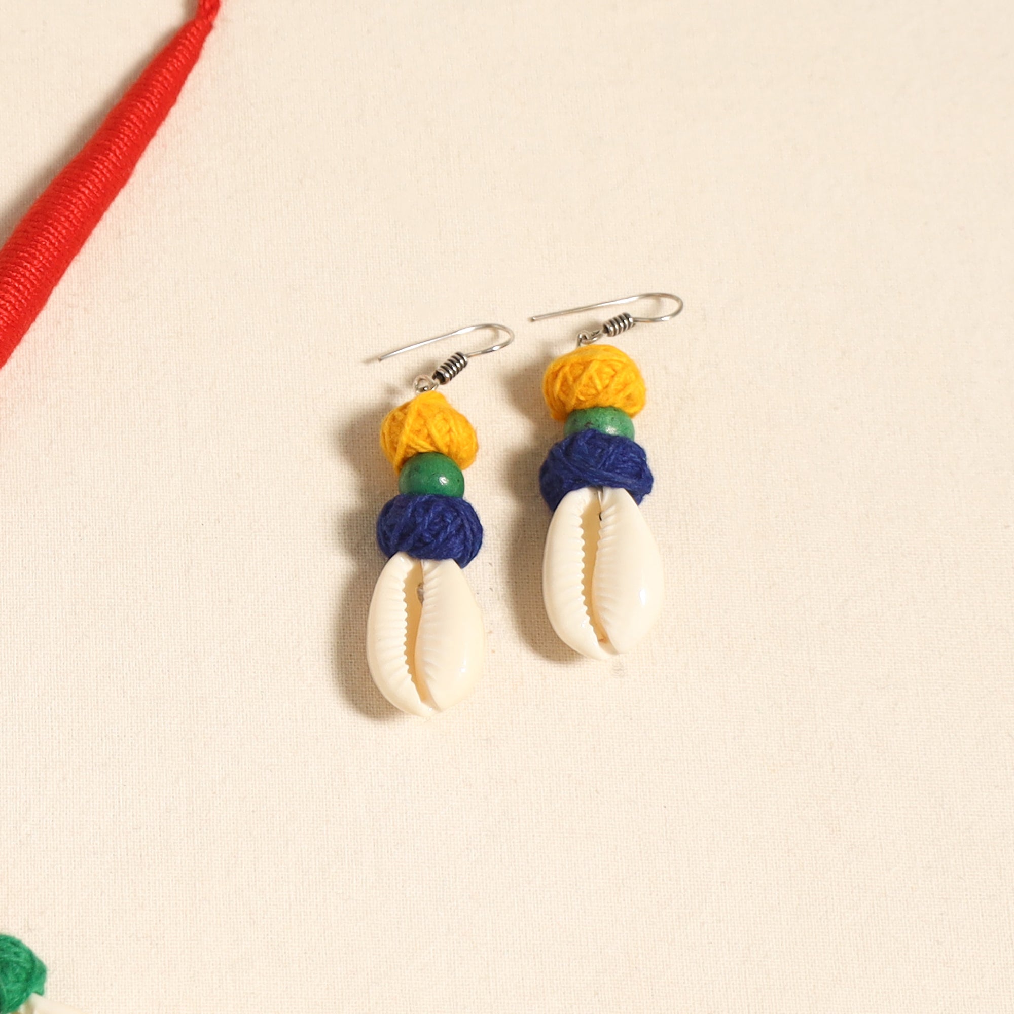 Add a touch of handmade charm to your ensemble with this elegant red german silver necklace set, beautifully accented with thread beads and shell. The set comes complete with matching earrings to effortlessly elevate your traditional or Indo-fusion look. Handcrafted by skilled artisans, it is perfect for festive occasions, cultural functions, or simply for adding a unique flair to your everyday style. It also makes a thoughtful gift for your loved ones.
