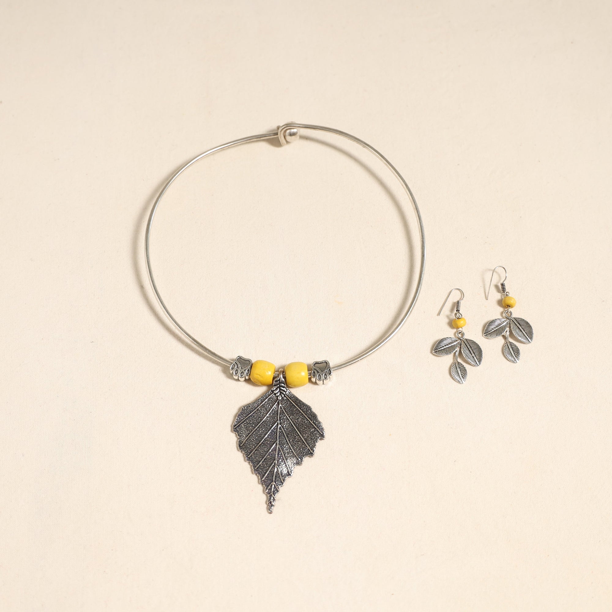 Add a touch of handmade charm to your ensemble with this elegant white german silver hasli necklace set, beautifully accented with wooden beads. The set comes complete with matching earrings to effortlessly elevate your traditional or Indo-fusion look. Handcrafted by skilled artisans, it’s perfect for festive occasions, cultural events, or simply for adding a unique flair to your everyday style. It also makes a thoughtful gift for your loved ones.