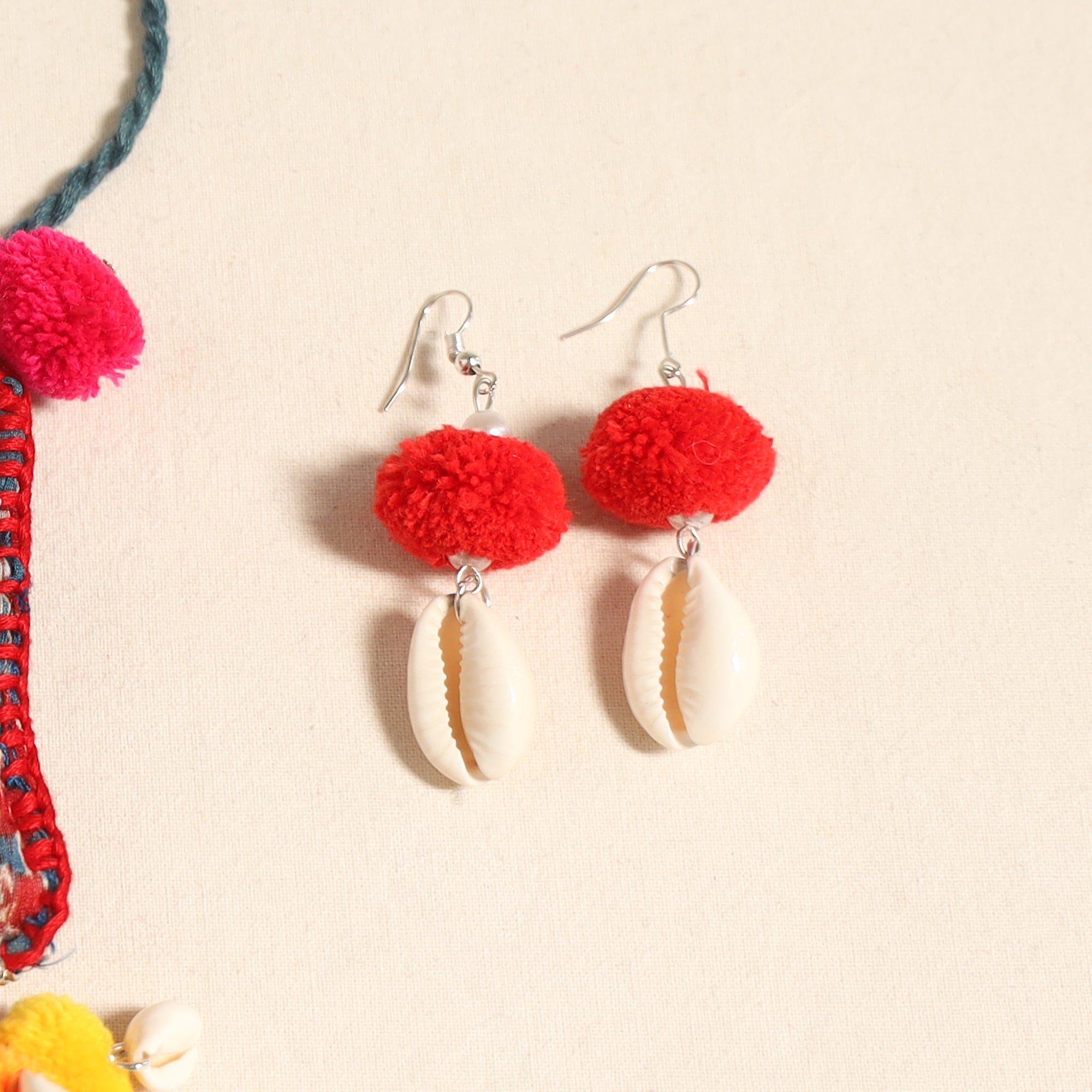 Add a touch of handmade charm to your ensemble with this elegant red fabart necklace set, beautifully accented with pom-poms and shells. The set comes complete with matching earrings to effortlessly elevate your traditional or Indo-fusion look. Handcrafted by skilled artisans, it is perfect for festive occasions, cultural functions, or simply for adding a unique flair to your everyday style. It also makes a thoughtful gift for your loved ones.