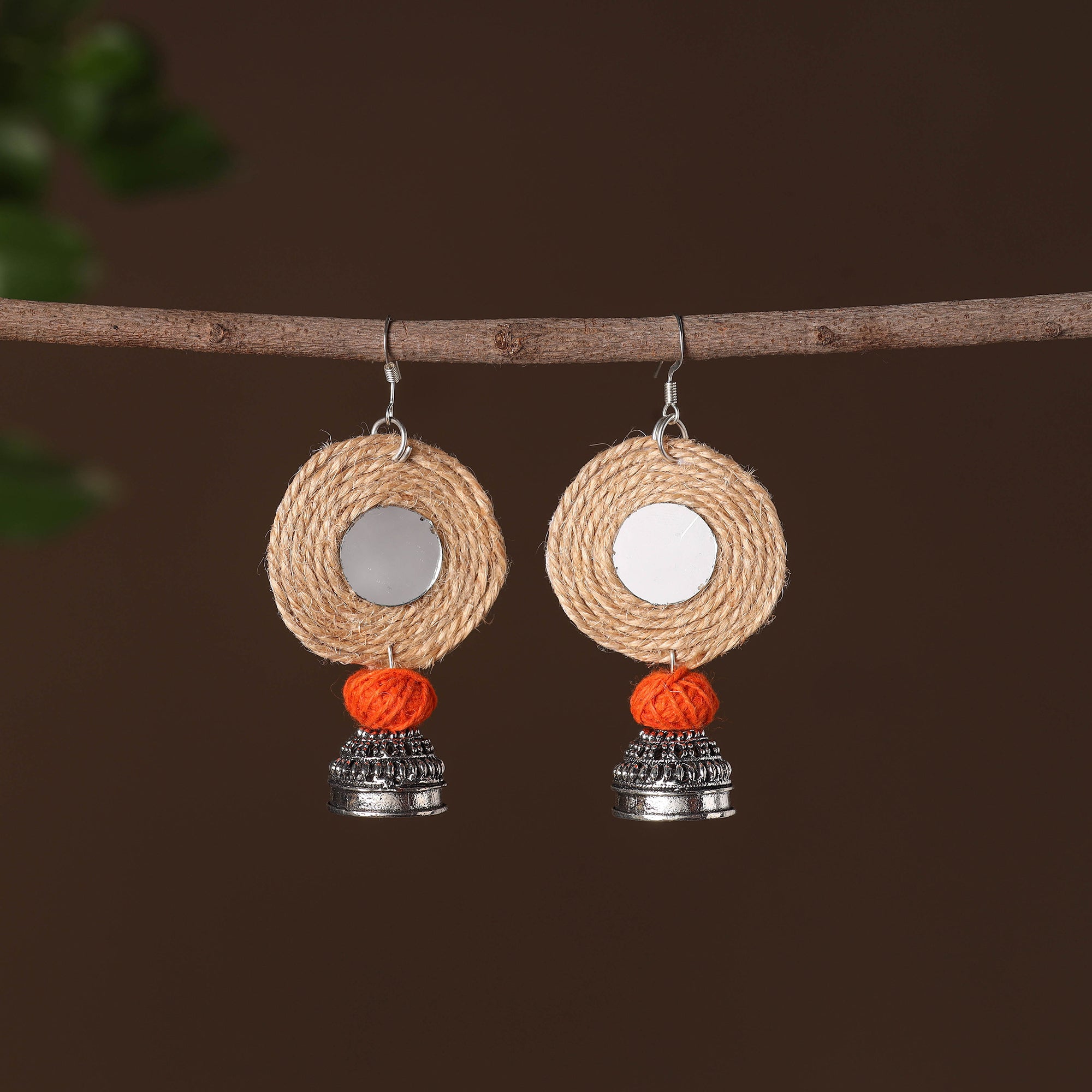 Add a touch of tradition and elegance to your look with our beige german silver jute jhumki earrings for women. Crafted from oxidised german silver, these beautiful earrings feature intricate jute, thread & mirror work. Perfect for both casual outings and festive celebrations, they enhance any outfit with their unique charm.