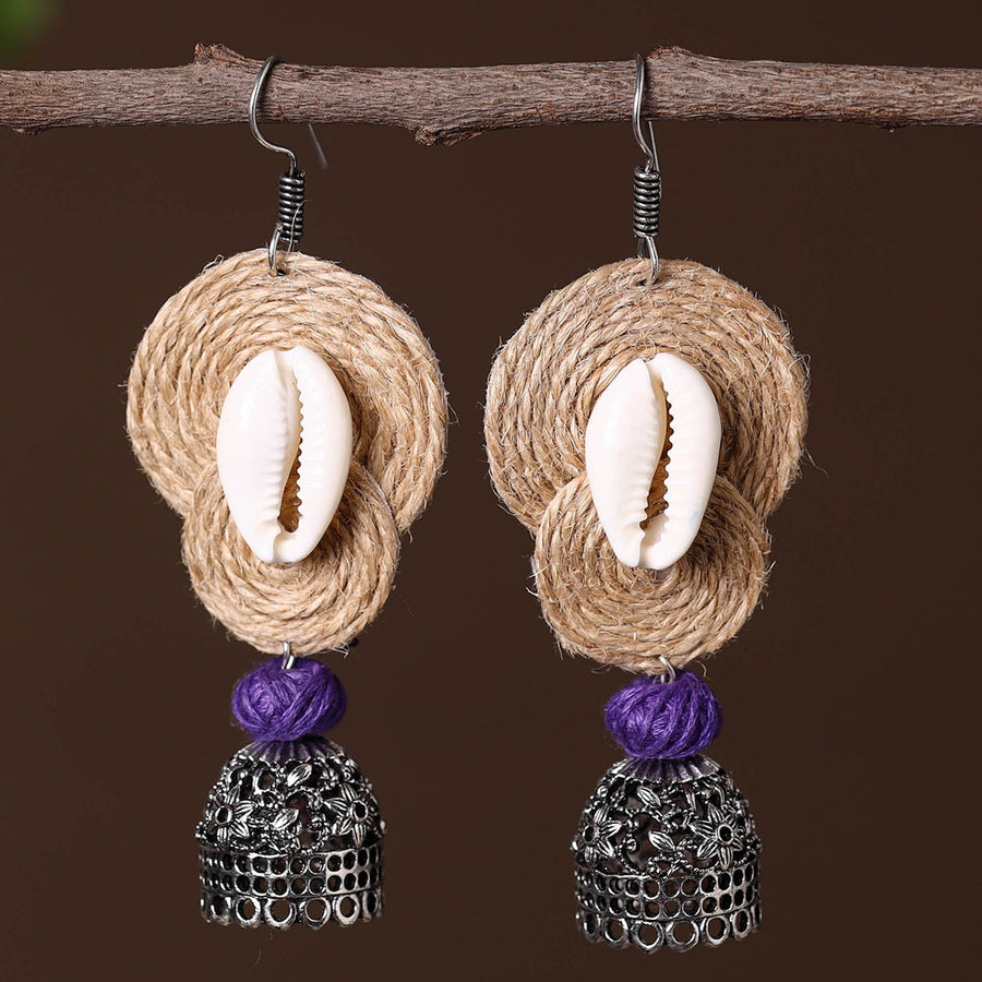 Material  These beige handcrafted german silver jute jhumki earrings. Featuring intricate jute, seashell, and thread detailing, these earrings add a unique and vibrant touch to your look. Perfect for casual wear or festive occasions.