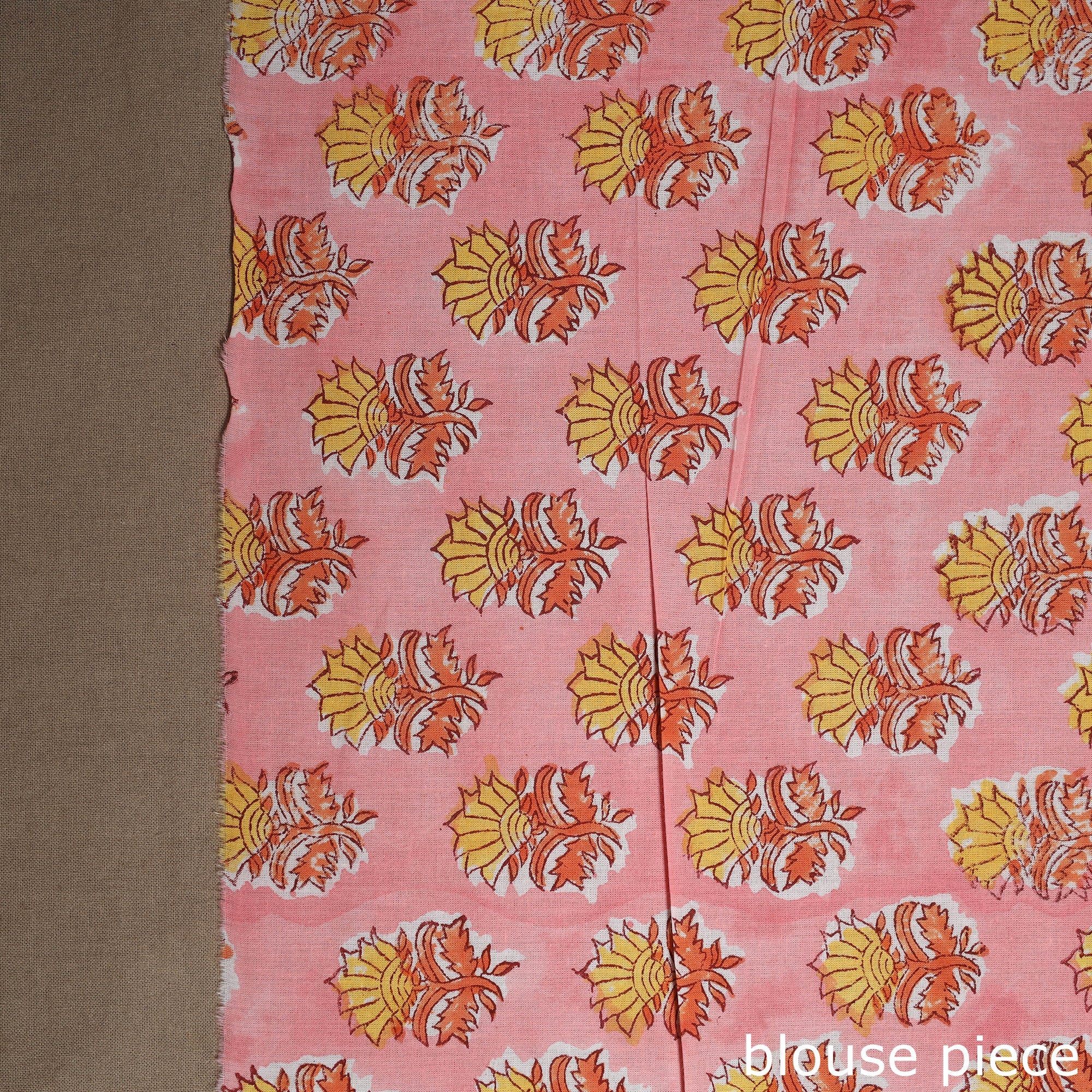 A plain orange kota doria cotton saree that beautifully blends tradition with everyday elegance. Woven by skilled artisans in Kota, Rajasthan, it features a lightweight, sheer texture and is dyed using natural colours that reflect true authenticity. The ensemble is complete with a handcrafted necklace, earrings, and a matching Sanganeri block print cotton blouse piece. Perfect for festive gatherings, cultural functions, or simply when you want a graceful outfit for everyday wear. This saree flatters every occasion.